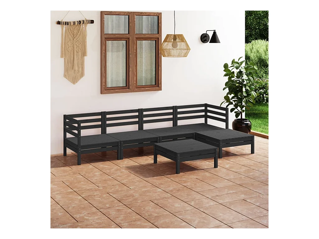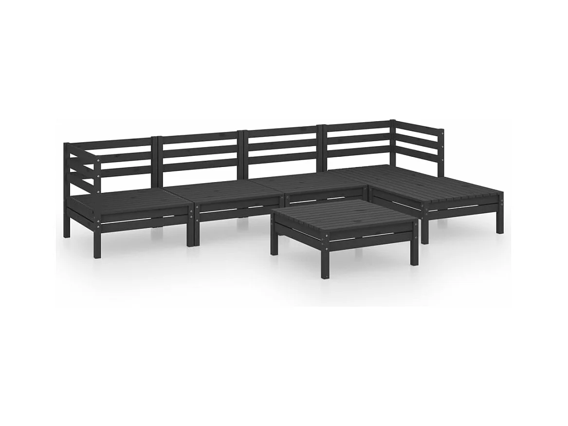 6 pzas Salón de jardín madera de pino maciza negro ES42623