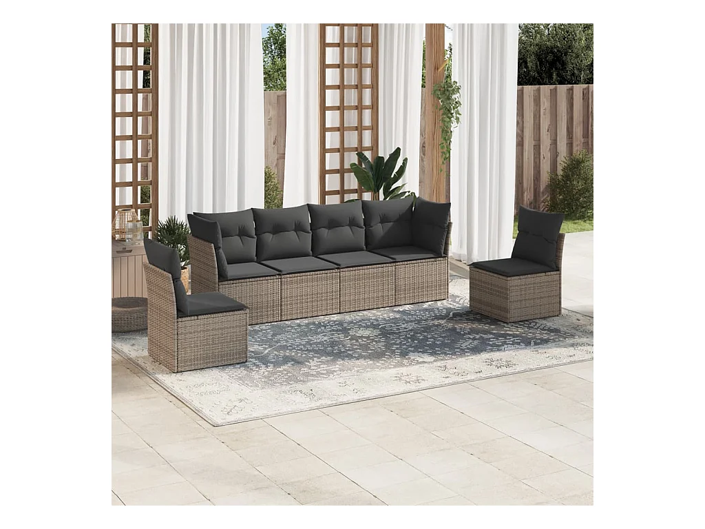6 pzas Salón de jardín y cojines ratán sintético gris ES48671