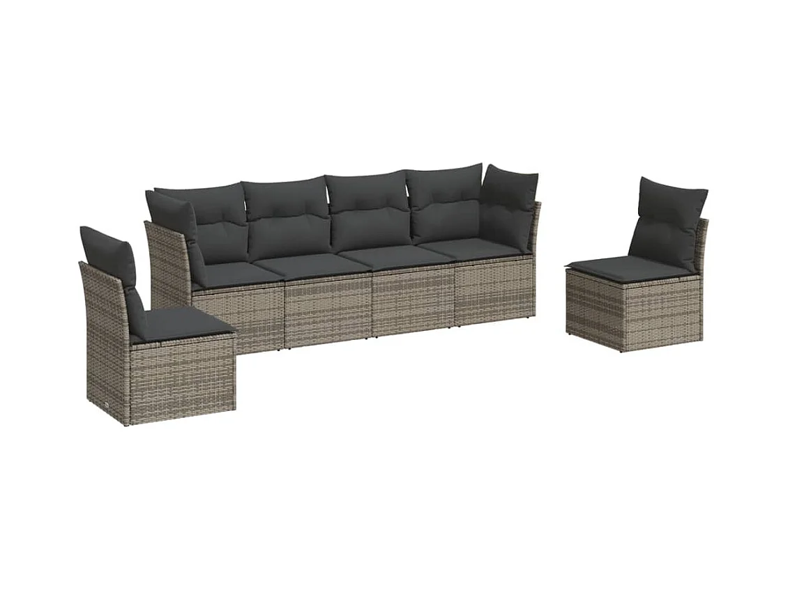 6 pzas Salón de jardín y cojines ratán sintético gris ES46261