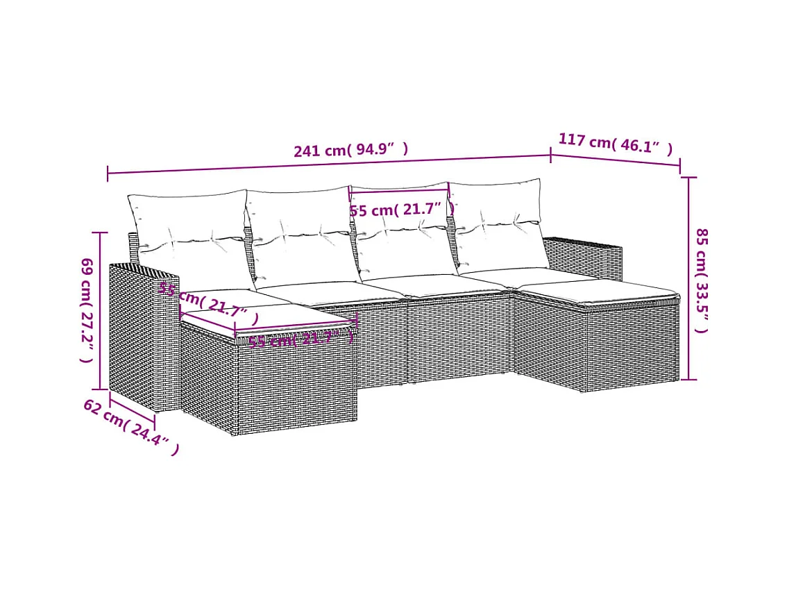 6 pzas Salón de jardín y cojines ratán sintético gris ES48671