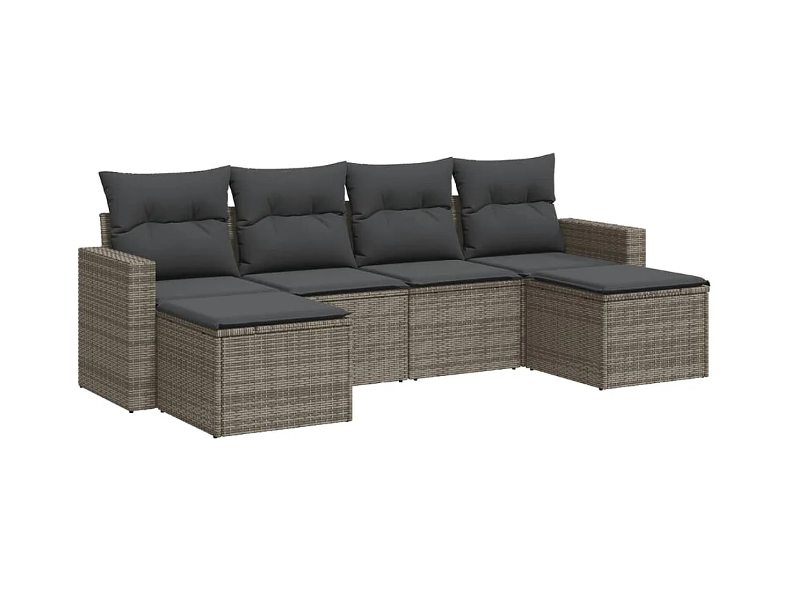 6 pzas Salón de jardín y cojines ratán sintético gris ES26074