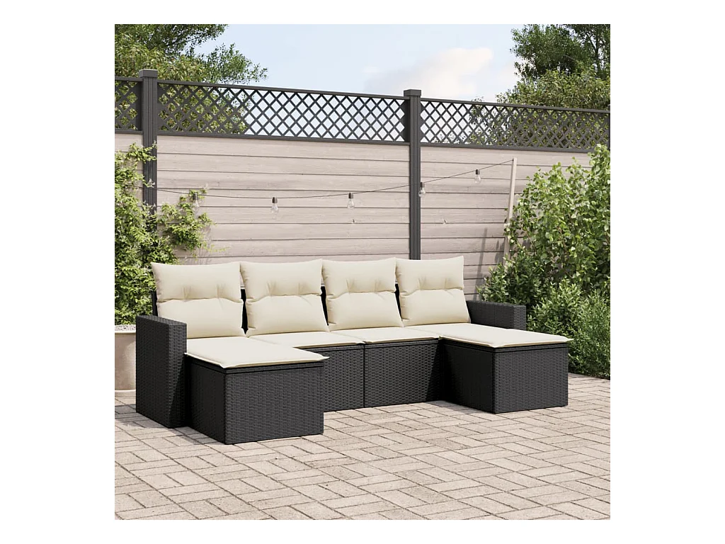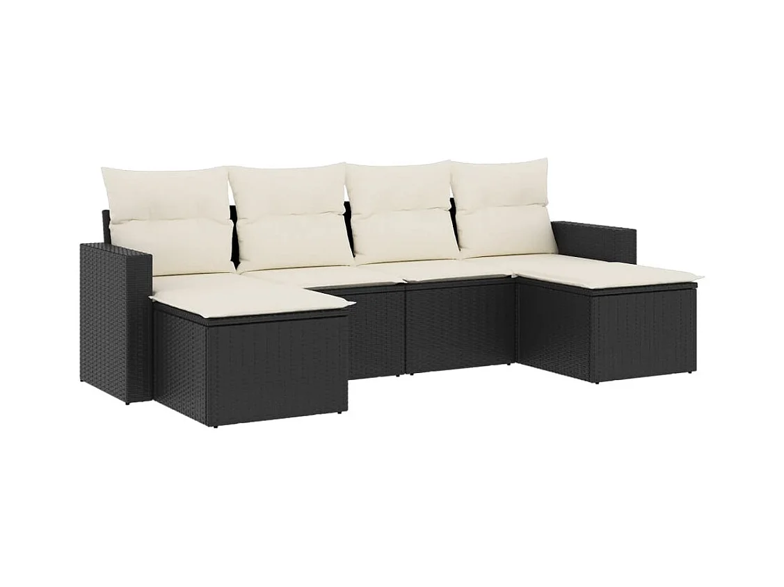 6 pzas Salón de jardín y cojines ratán sintético negro ES22655