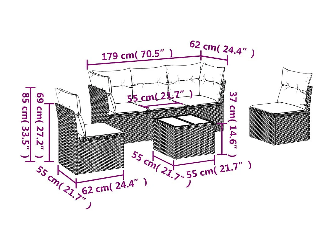 6 pzas Salón de jardín y cojines ratán sintético negro ES28647
