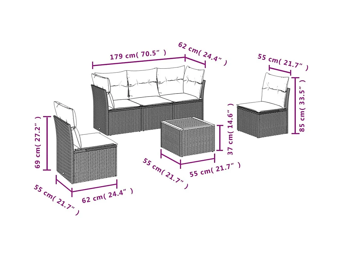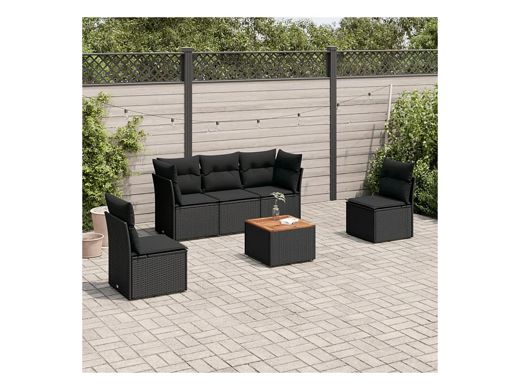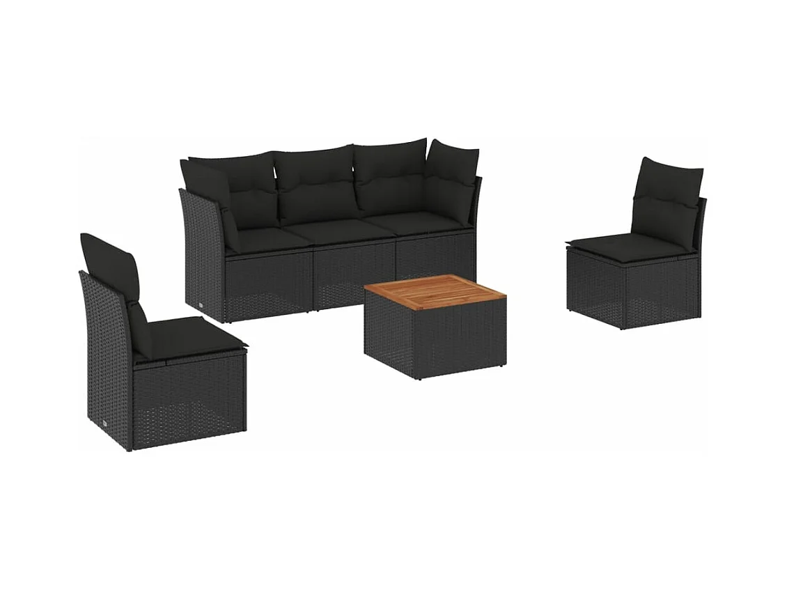 6 pzas Salón de jardín y cojines ratán sintético negro ES66156