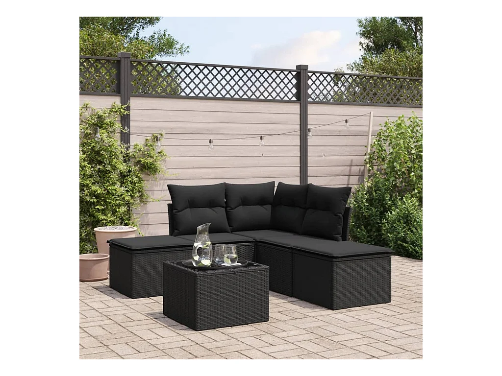 6 pzas Salón de jardín y cojines ratán sintético negro ES82067