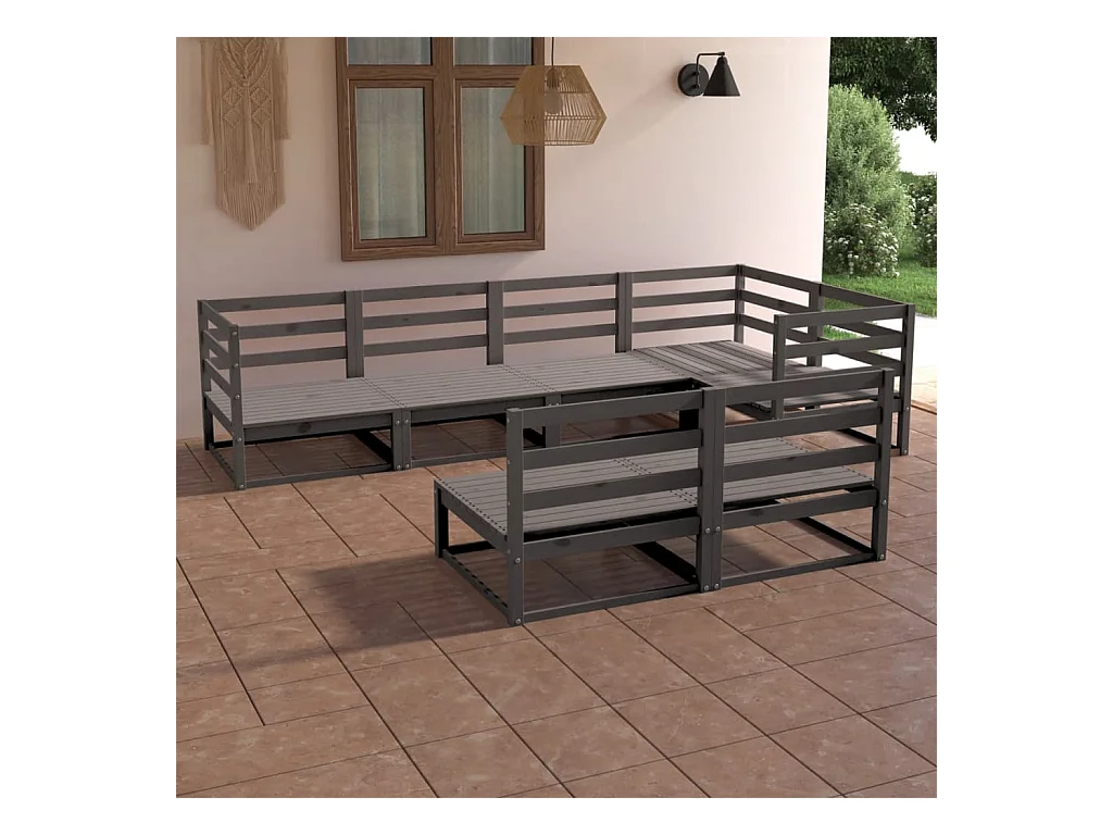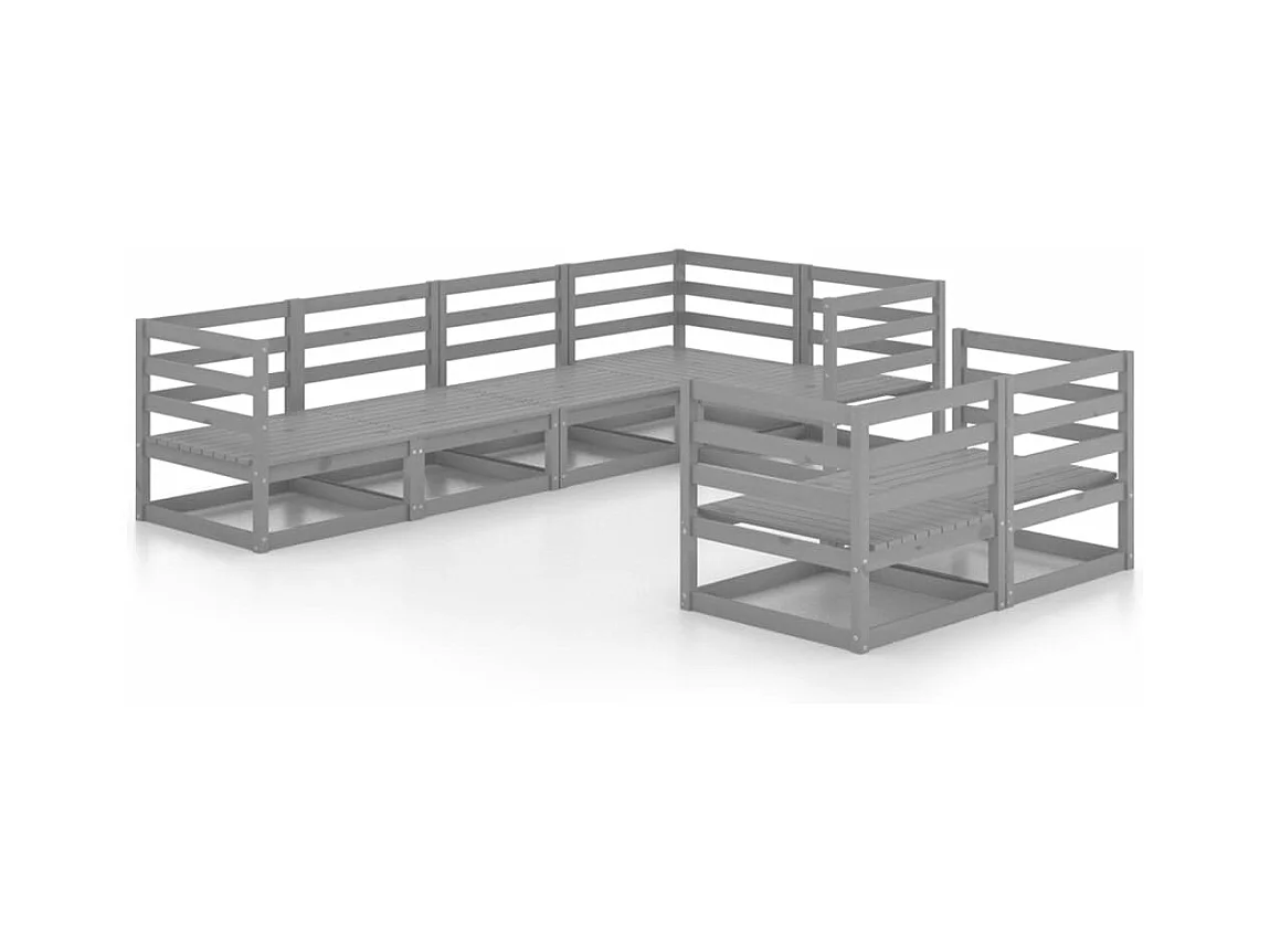 7 pzas Salón de jardín gris madera de pino maciza ES74517