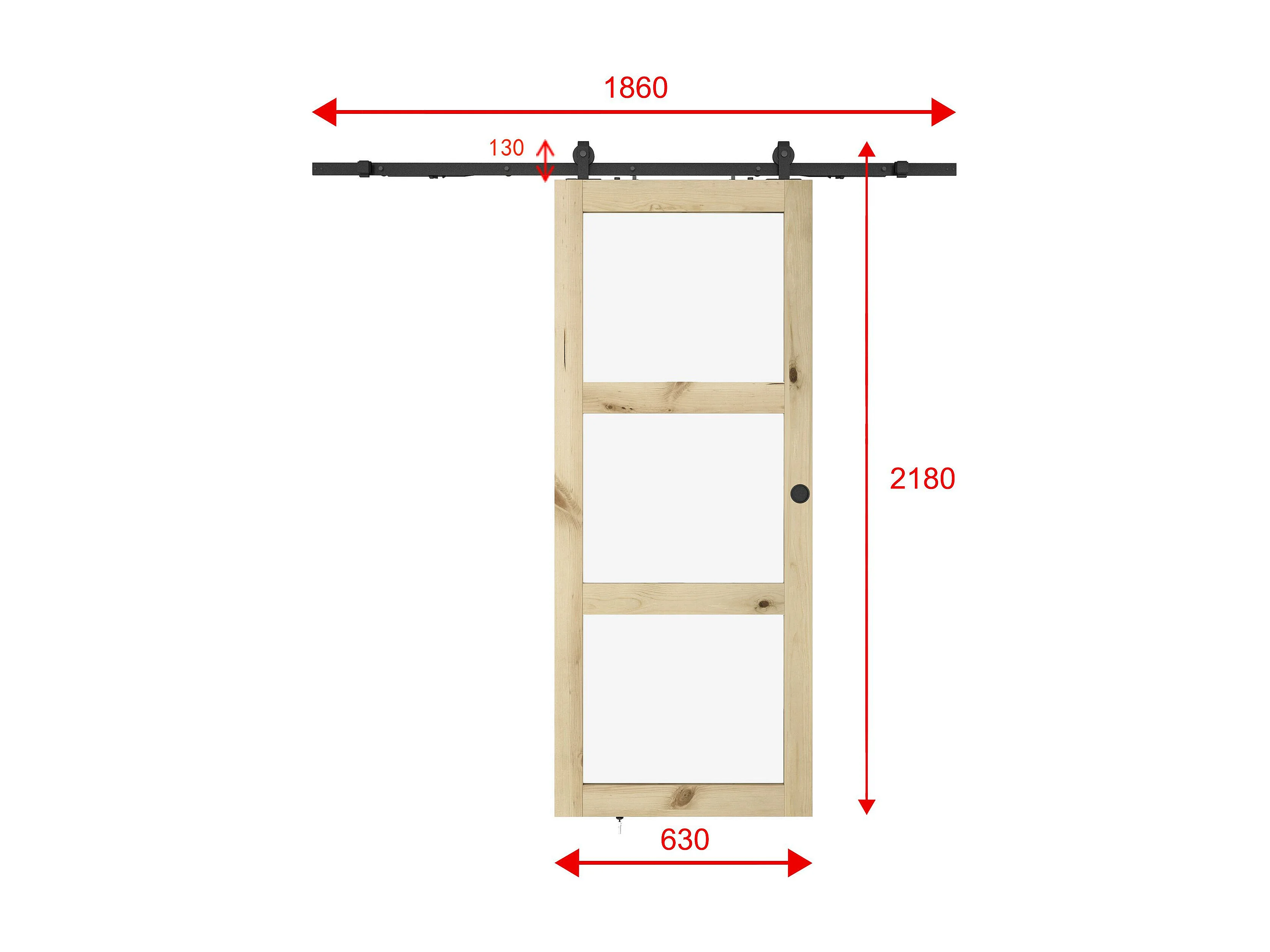 Puerta corredera vista en madera y vidrio templado - 3 ventanales - Alt. 205 x L63 cm - ACOSTA II