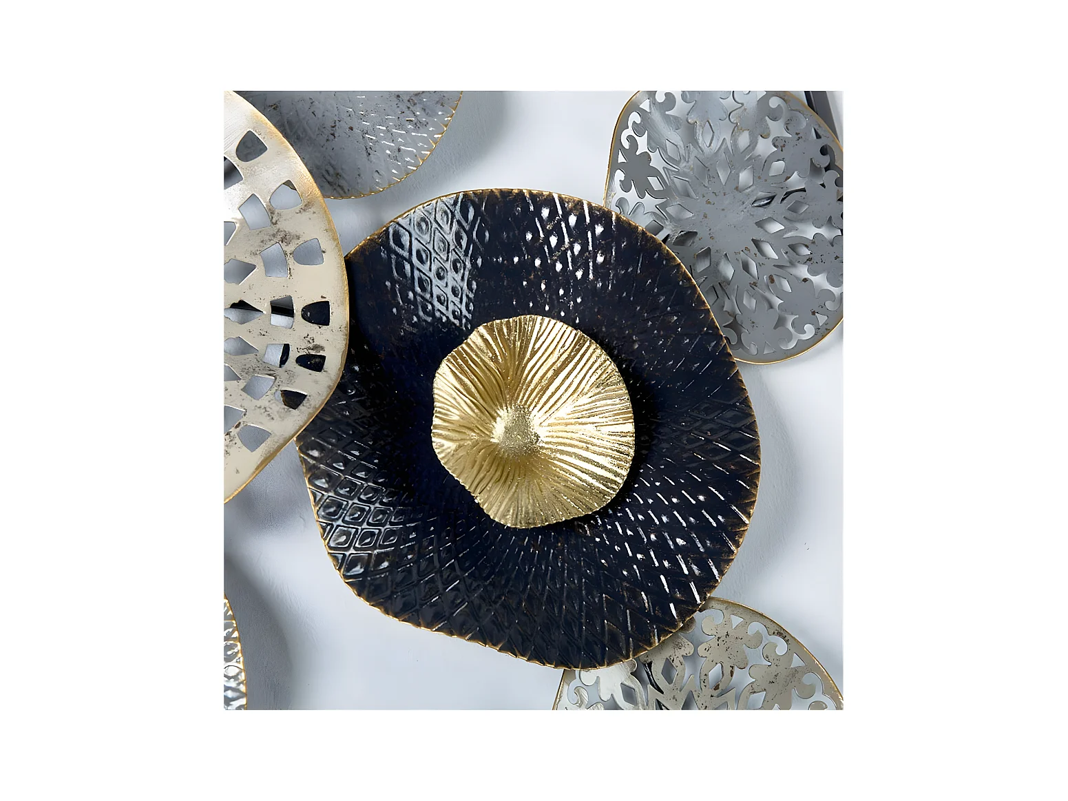Adorno pared 50cm marco circulo plato, negro y oro mariella