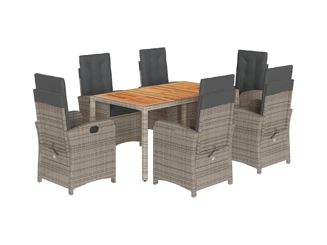 Wanda Set comedor jardín 7 pzas y cojines ratán sintético gris