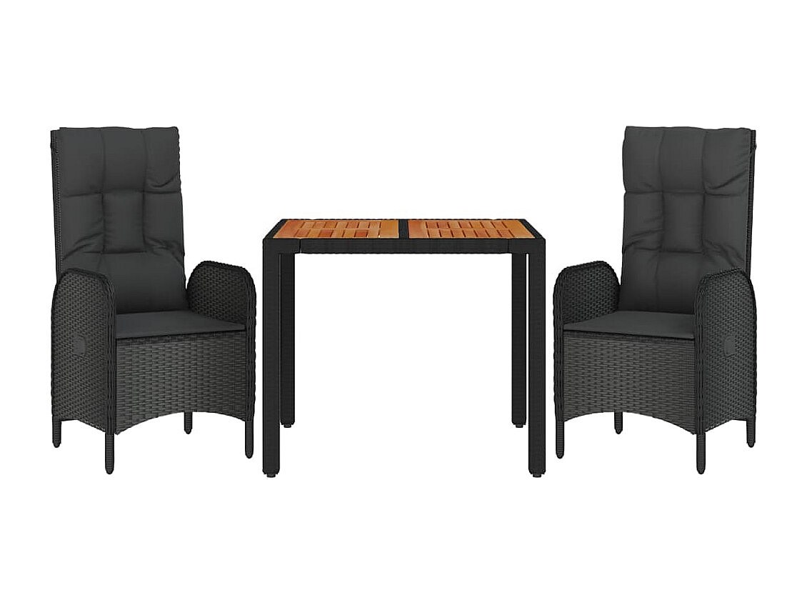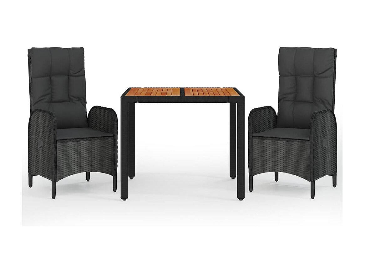 Garden Furniture - Juego comedor jardín 3 pzas madera acacia ratán sintético negro