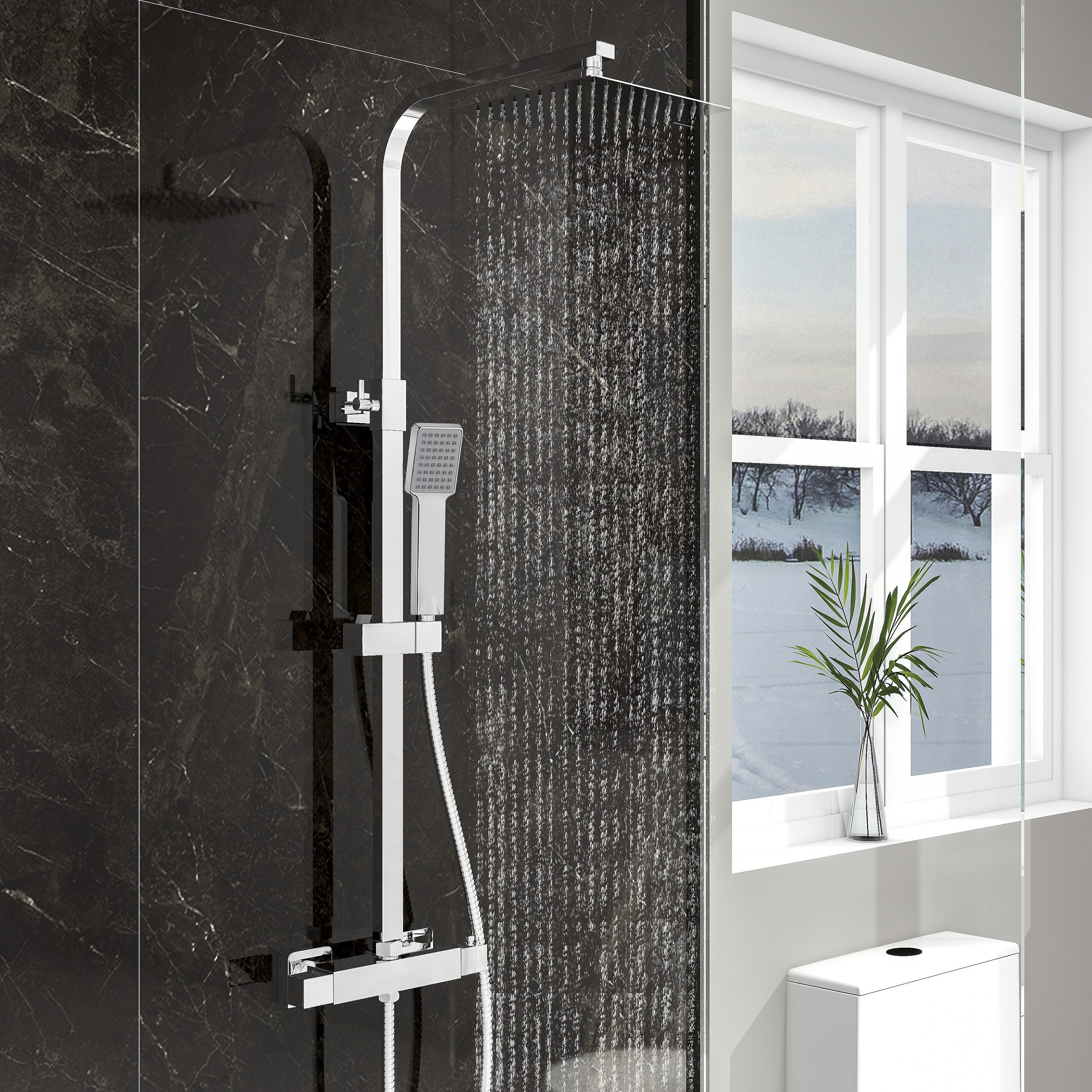 Aica columna de ducha termostática rociador grande cuadrado en cromo de acero inoxidable 80-120cm
