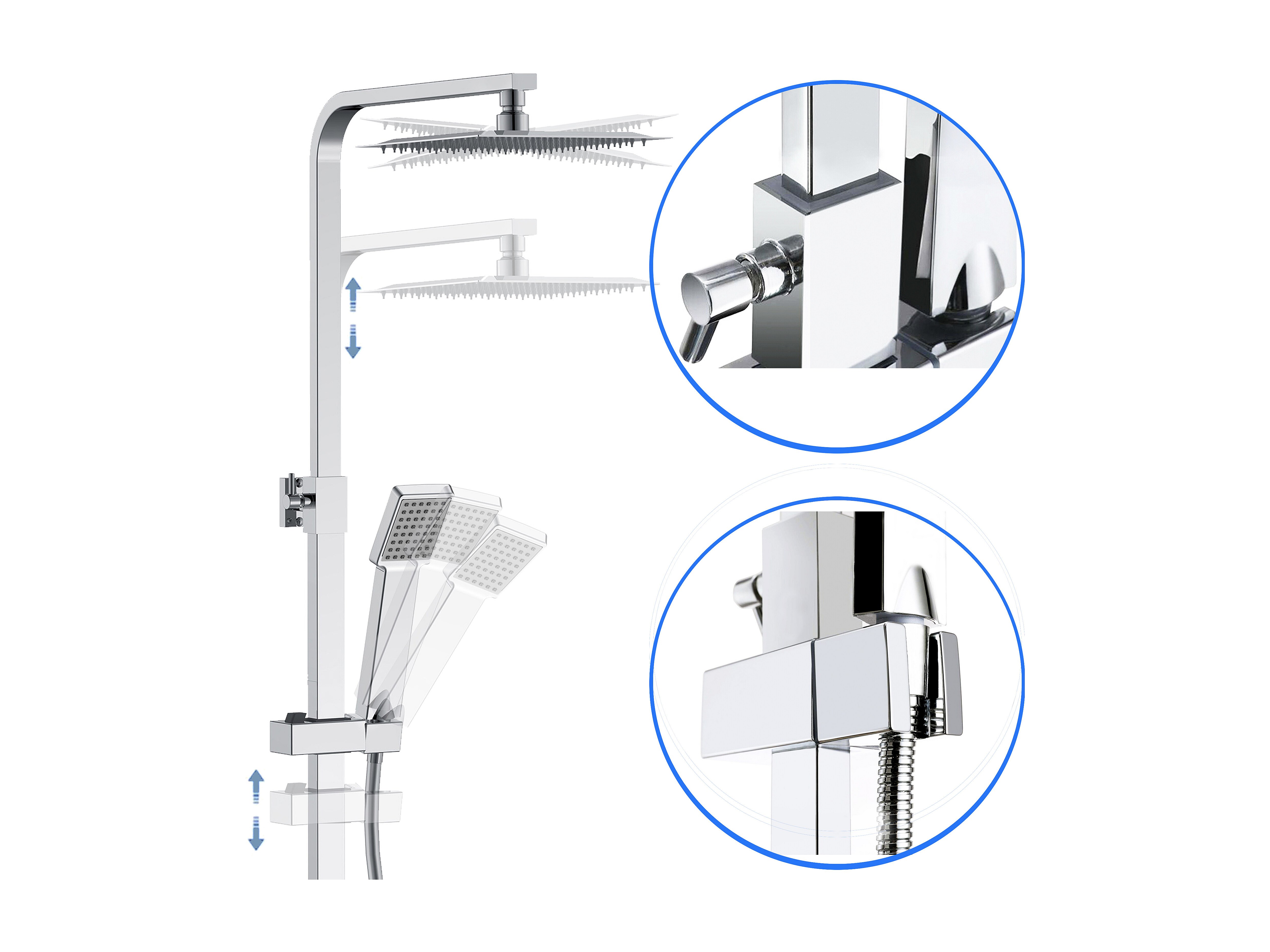 Aica columna de ducha 80-120cm termostático cuadrado con cabezal de ducha alcachofa de mano