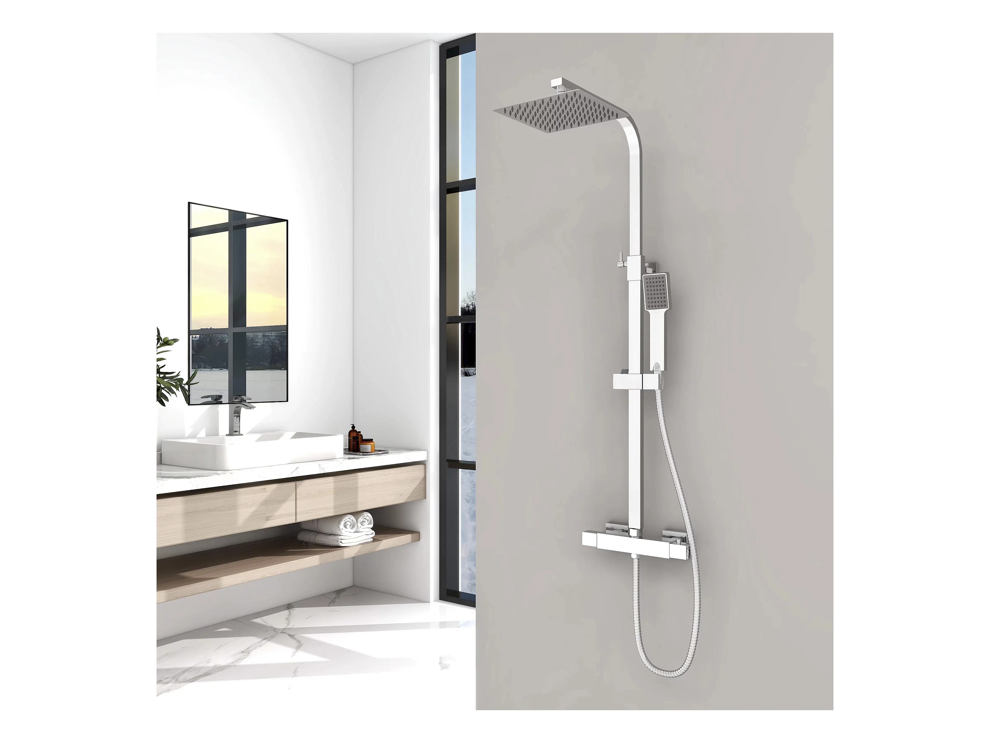 AICA Columna de Ducha Termostática Cromo con Alcachofa Cuadrada, Rociador Superior y Barra Ajustable