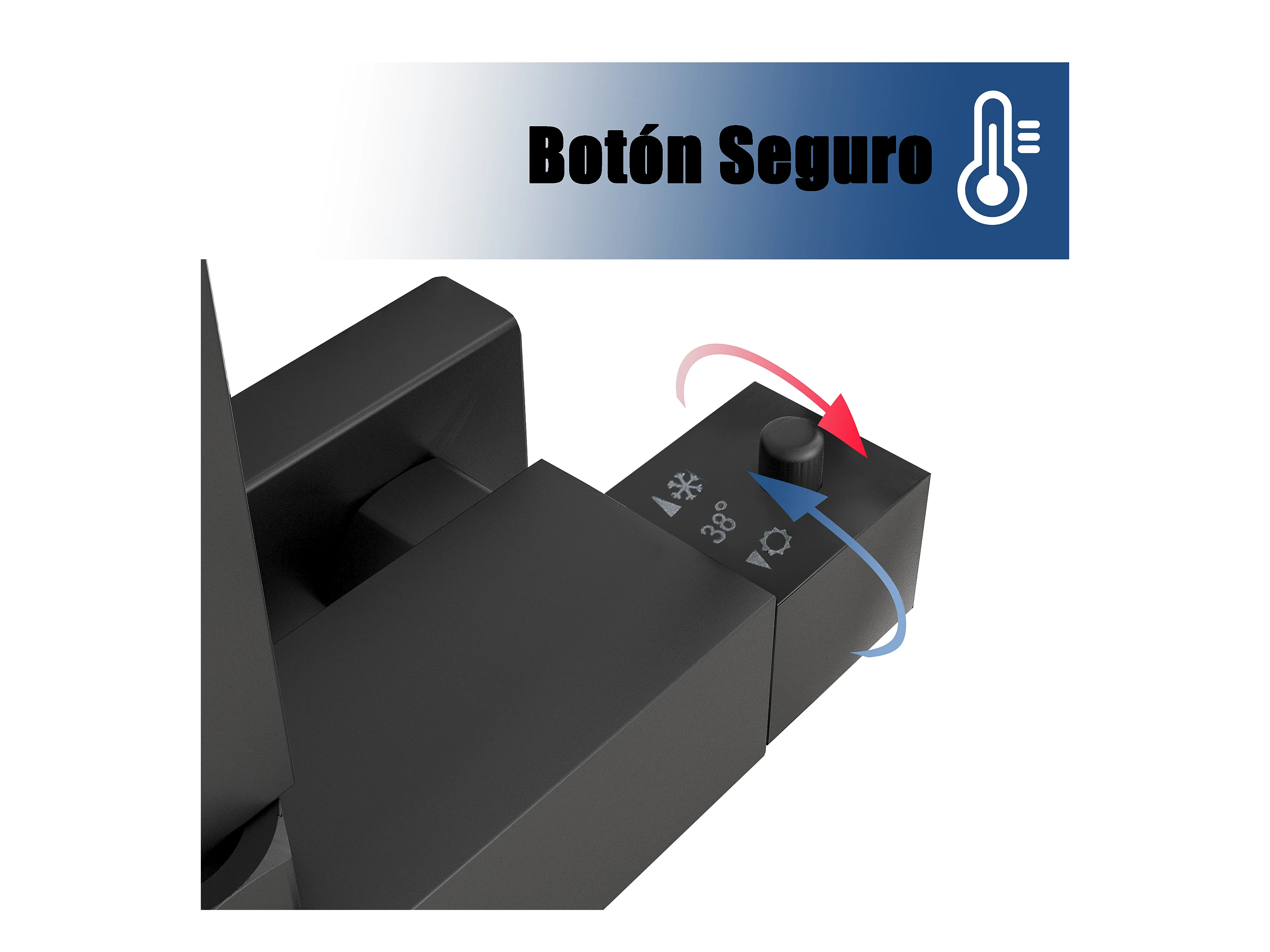 Columna de Ducha Termostática AICA - Negro Mate, Alcachofa Cuadrada+Raciador Superior Grande 20cmx20cm