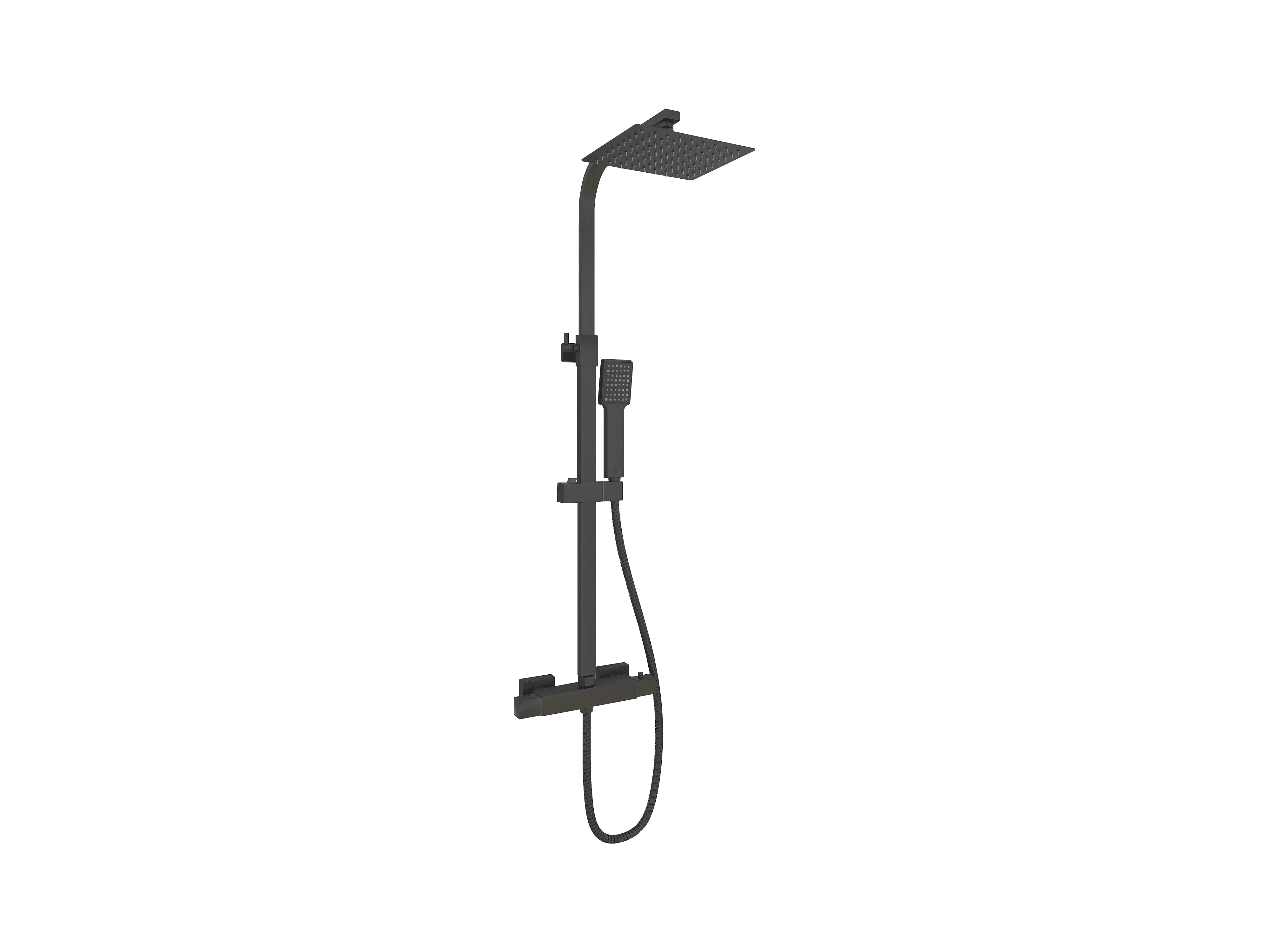 Columna de Ducha Termostática AICA negro mate alcachofa cuadrada y ducha superior grande