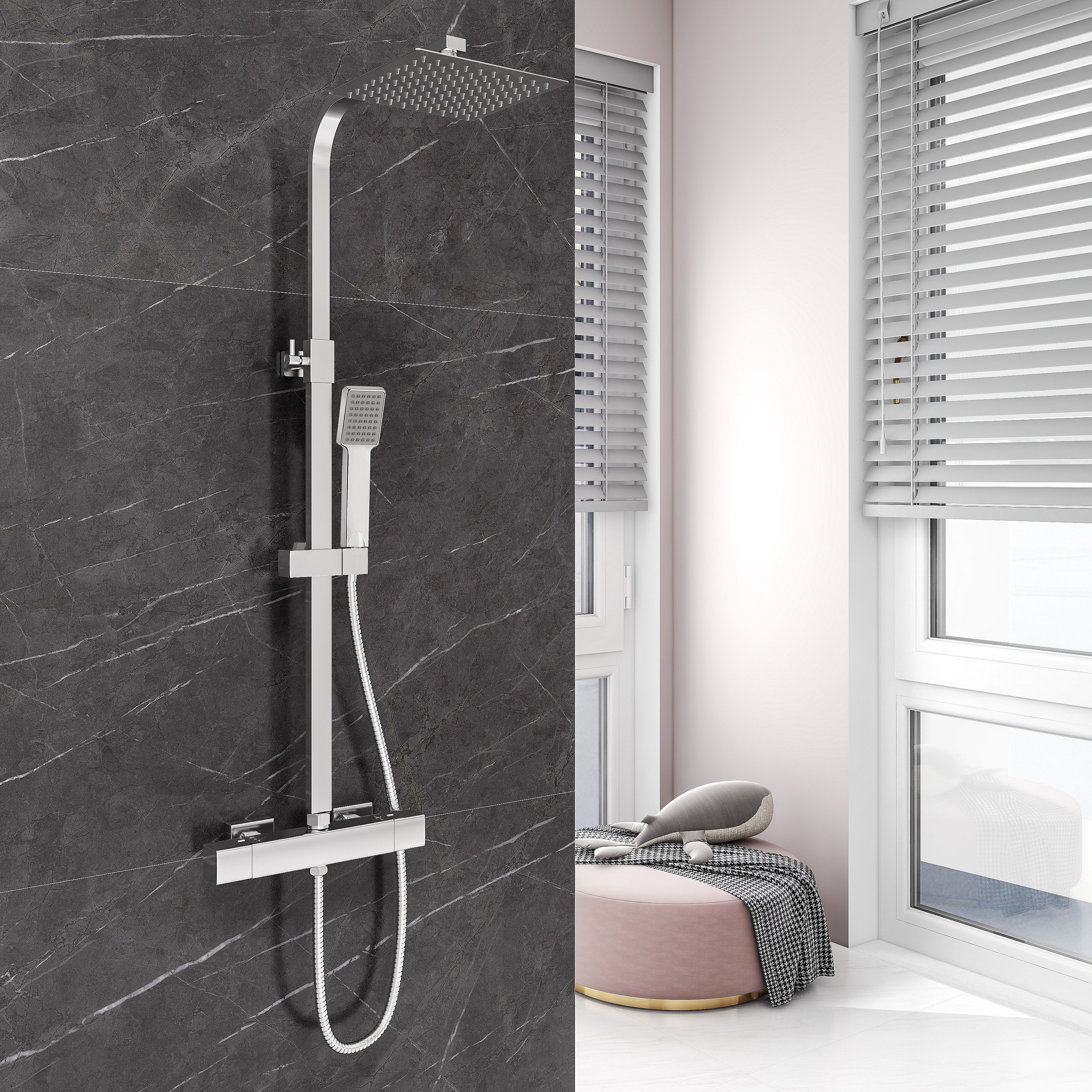 Aica columna de ducha termostática rociador grande cuadrado en cromo de acero inoxidable 80-120cm