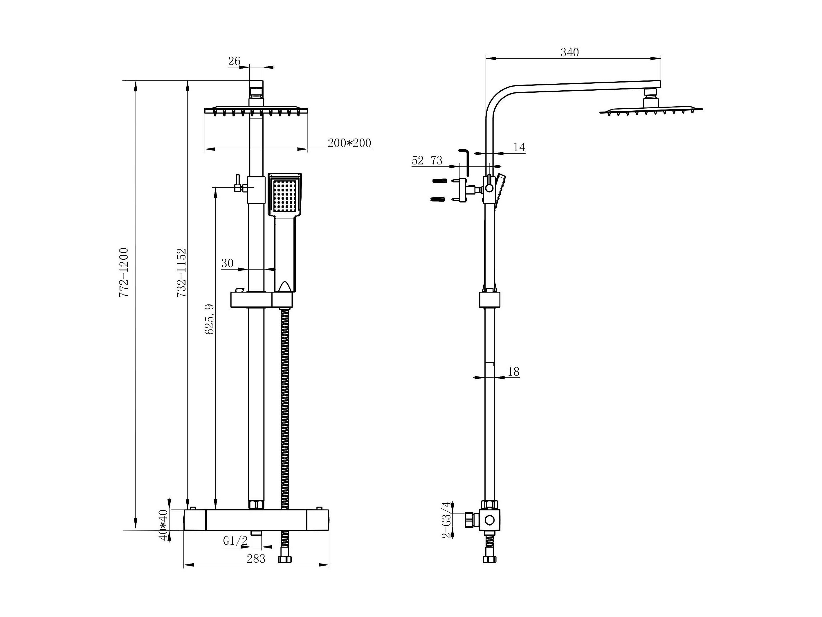 Aica columna ducha termostática cuadrada 764-1184mm alcachofa de ducha para baño