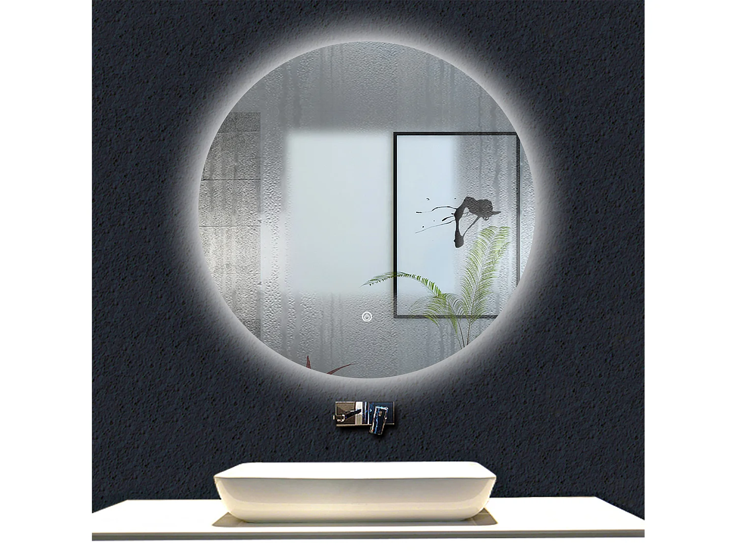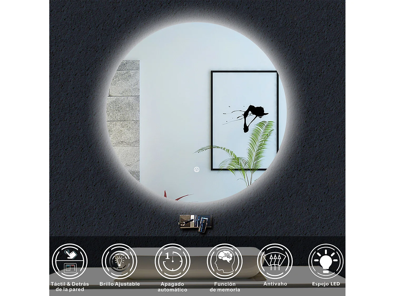 AICA Espejo 100 x 100 cm ,redondo,luz led,con función antivaho,brillo ajustable,función de memoria agapada