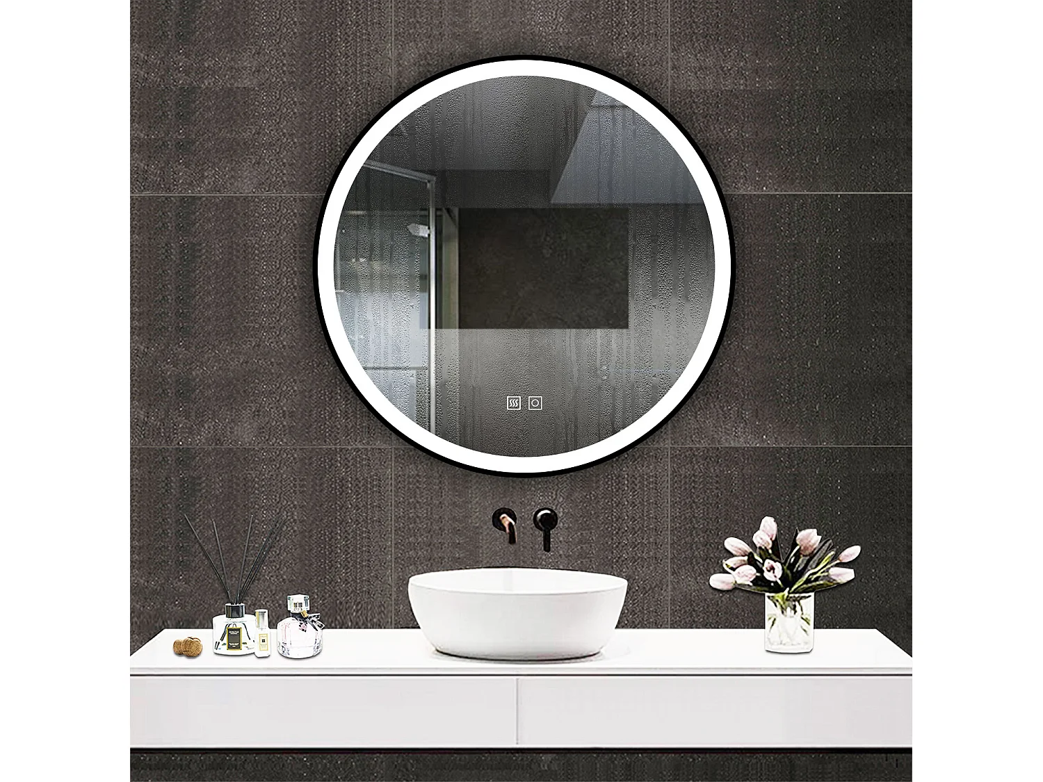 AICA espejo 60 x 60 cm, rendondo,con función antivaho,con luz de 3 colores,brillo ajustable,función de memoria agapada
