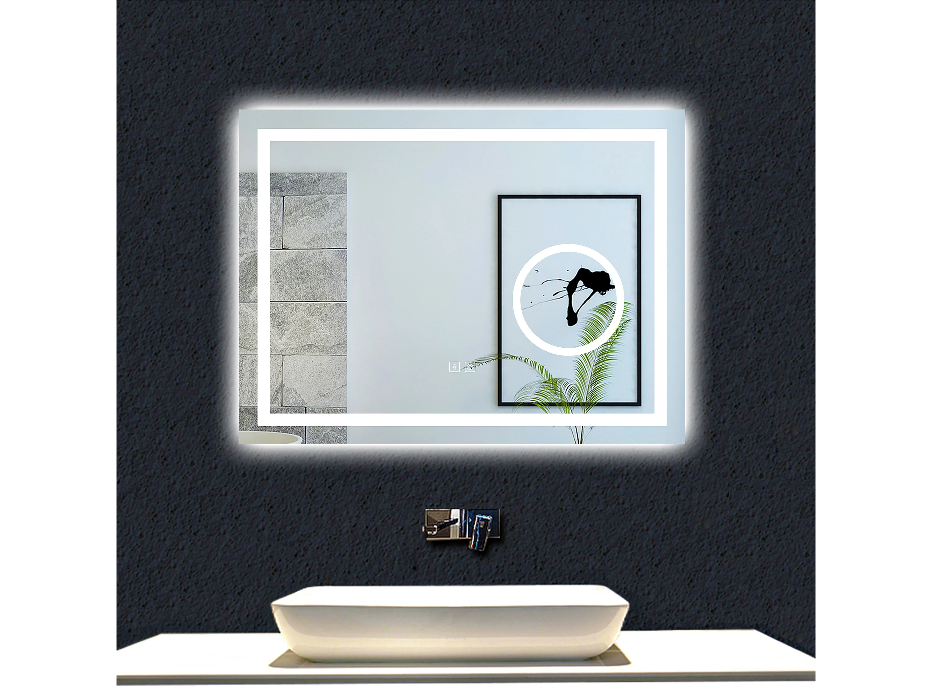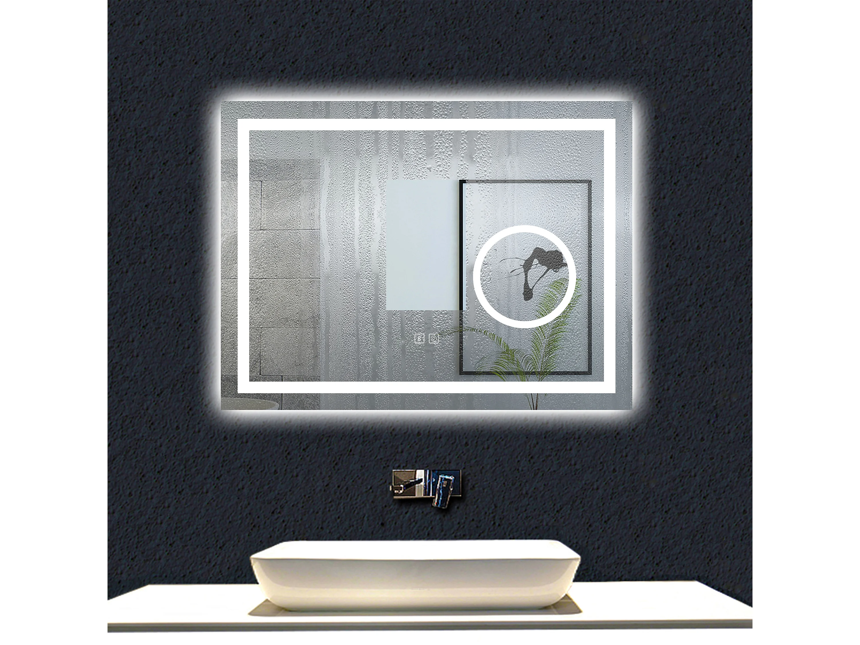 AICA Espejo 80 x 60 cm,rectangular,con función antivaho,Bluetooth,lupa 3x,con luz de 3 colores,brillo ajustable,función de memoria agapada