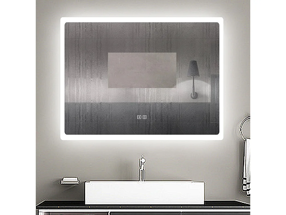AICA espejo 800 x 600 mm,con función antivaho,Bluetooth, espejo con luz de 3 colores,brillo ajustable,función de memoria agapada
