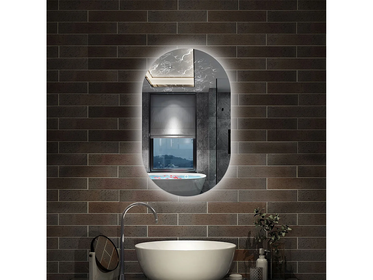 AICA Espejo con luz 45x75cm,Ovalado,brillo ajustable y memoria de apagado