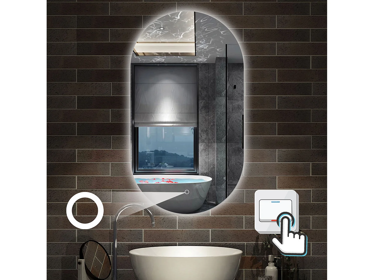 Espejo de cuarto de baño con botón tactil