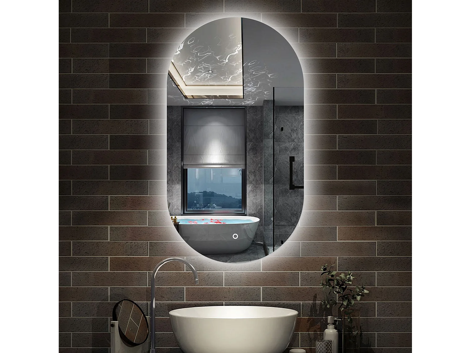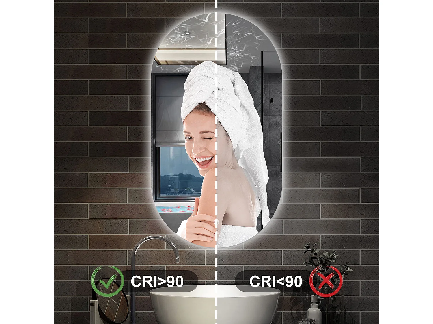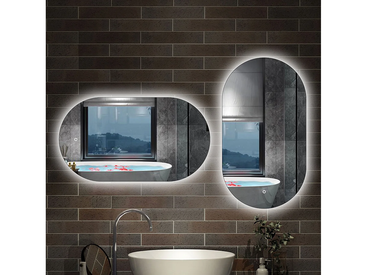 AICA Espejo con luz 50x90cm,Ovalado,brillo ajustable y memoria de apagado