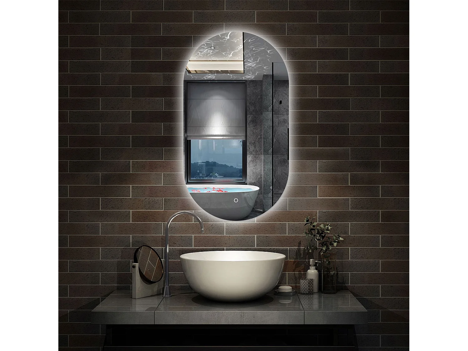 AICA Espejo con luz 60x100cm,Ovalado,brillo ajustable y memoria de apagado