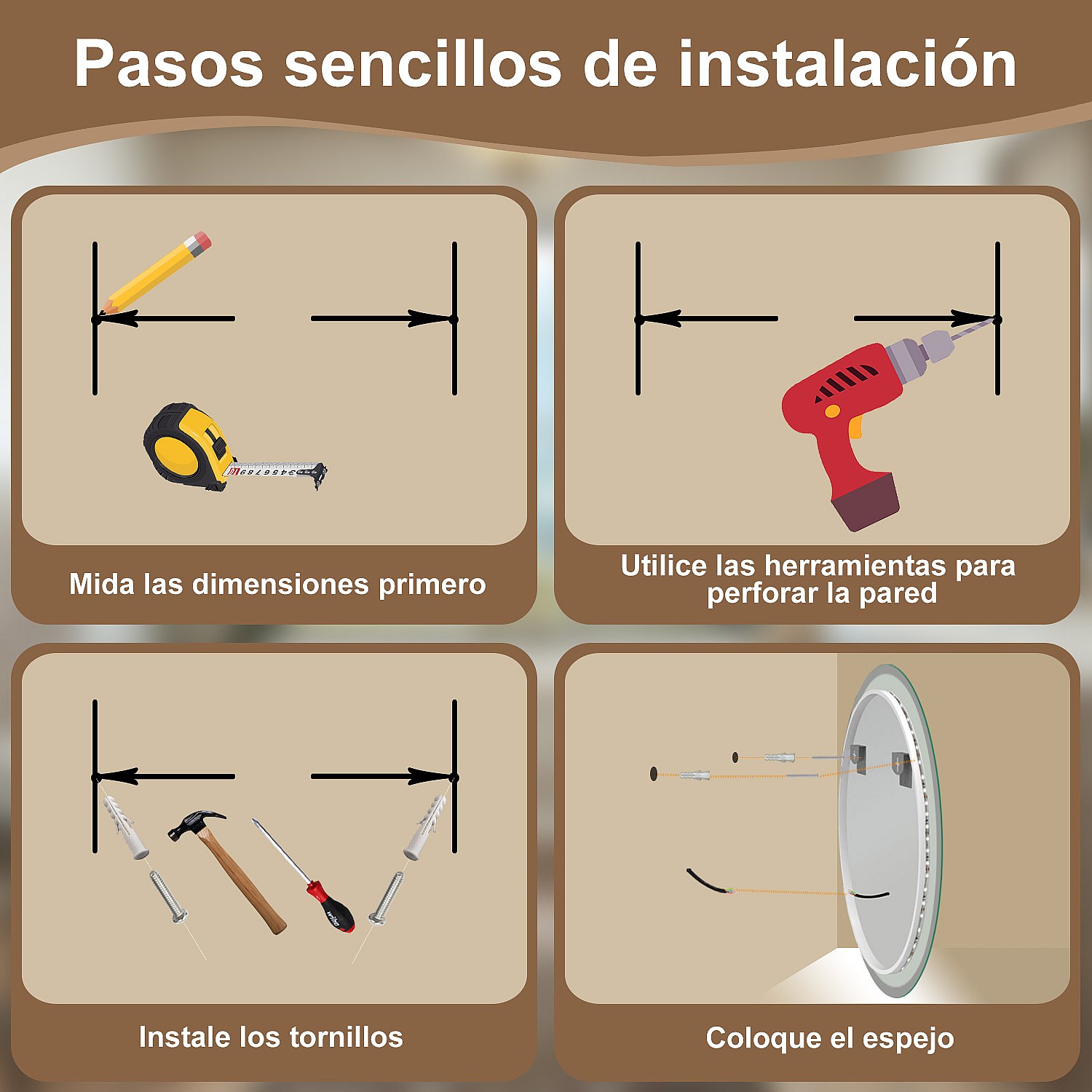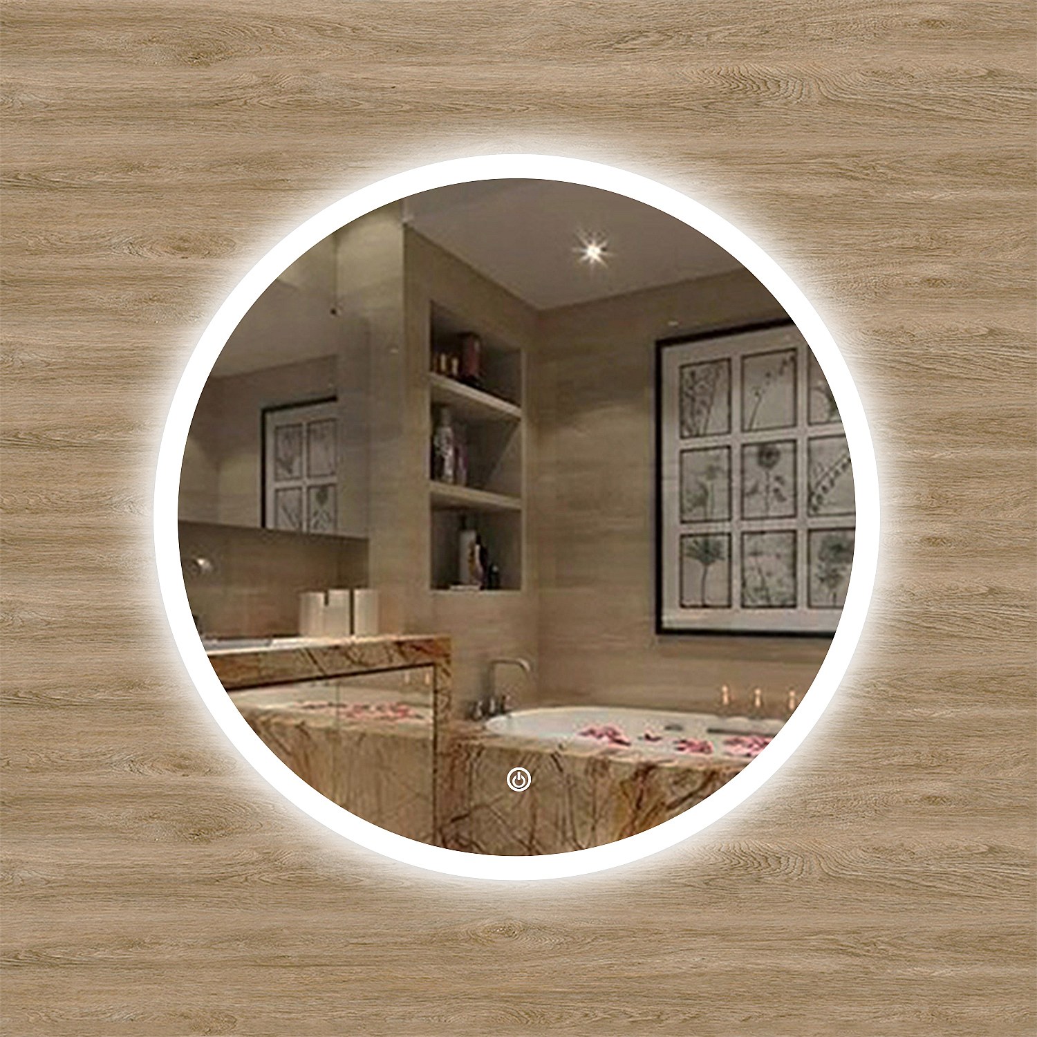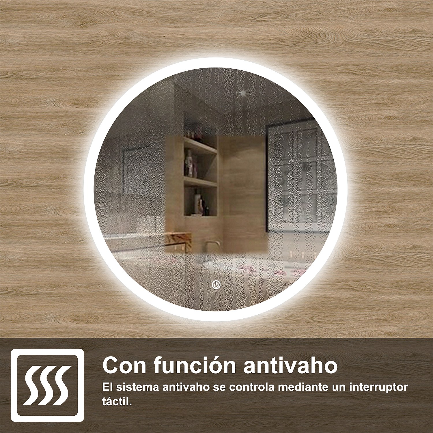 AICA Espejo de baño con iluminación LED Espejo redondo,60 cm, antivaho, brillo ajustable, memoria de apagado