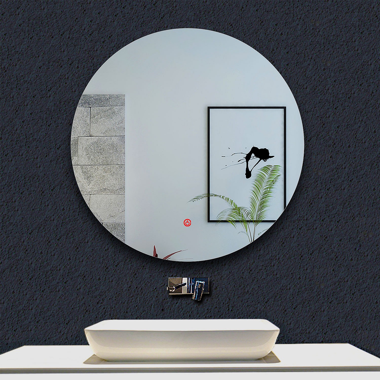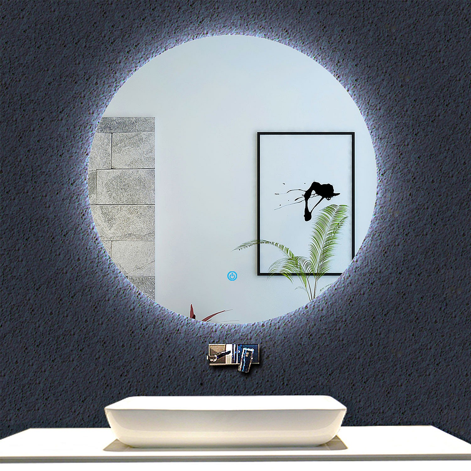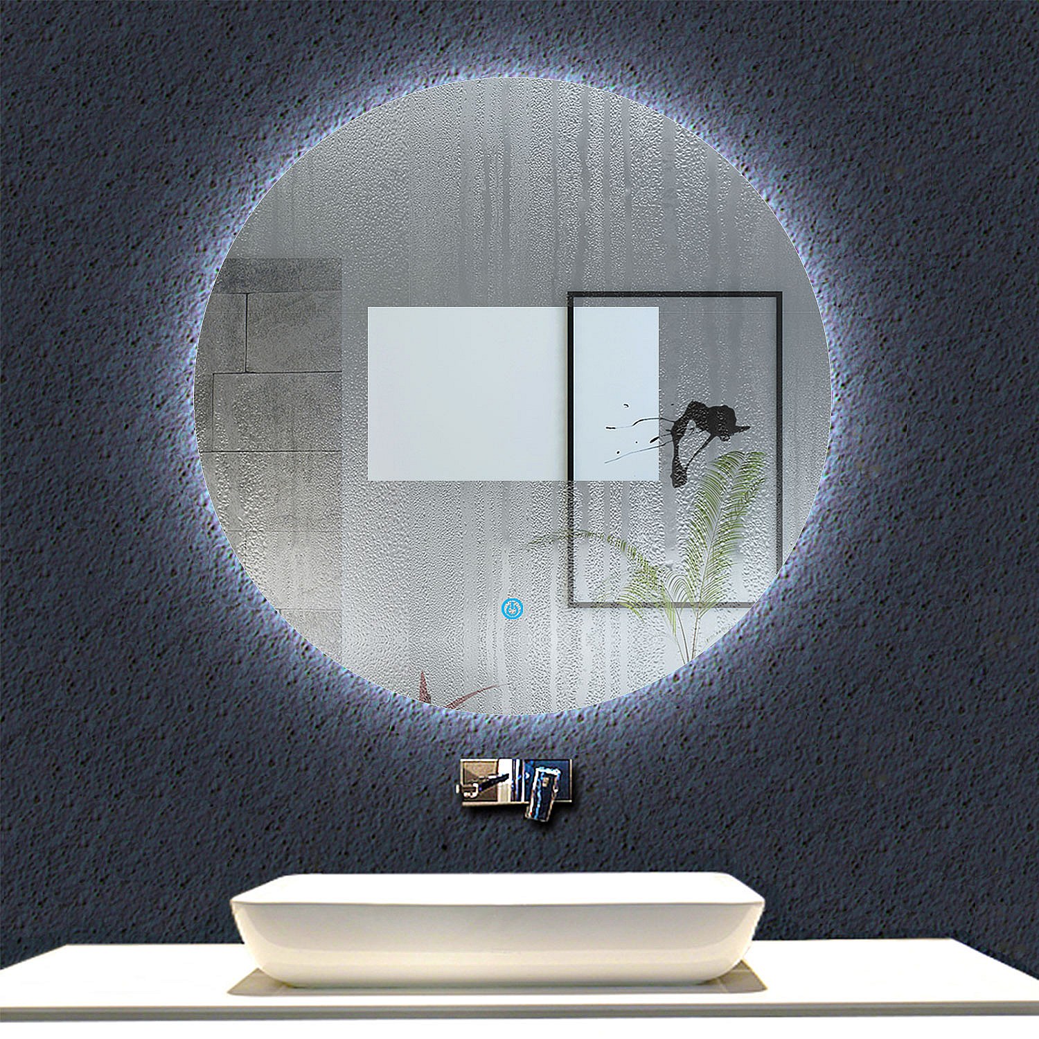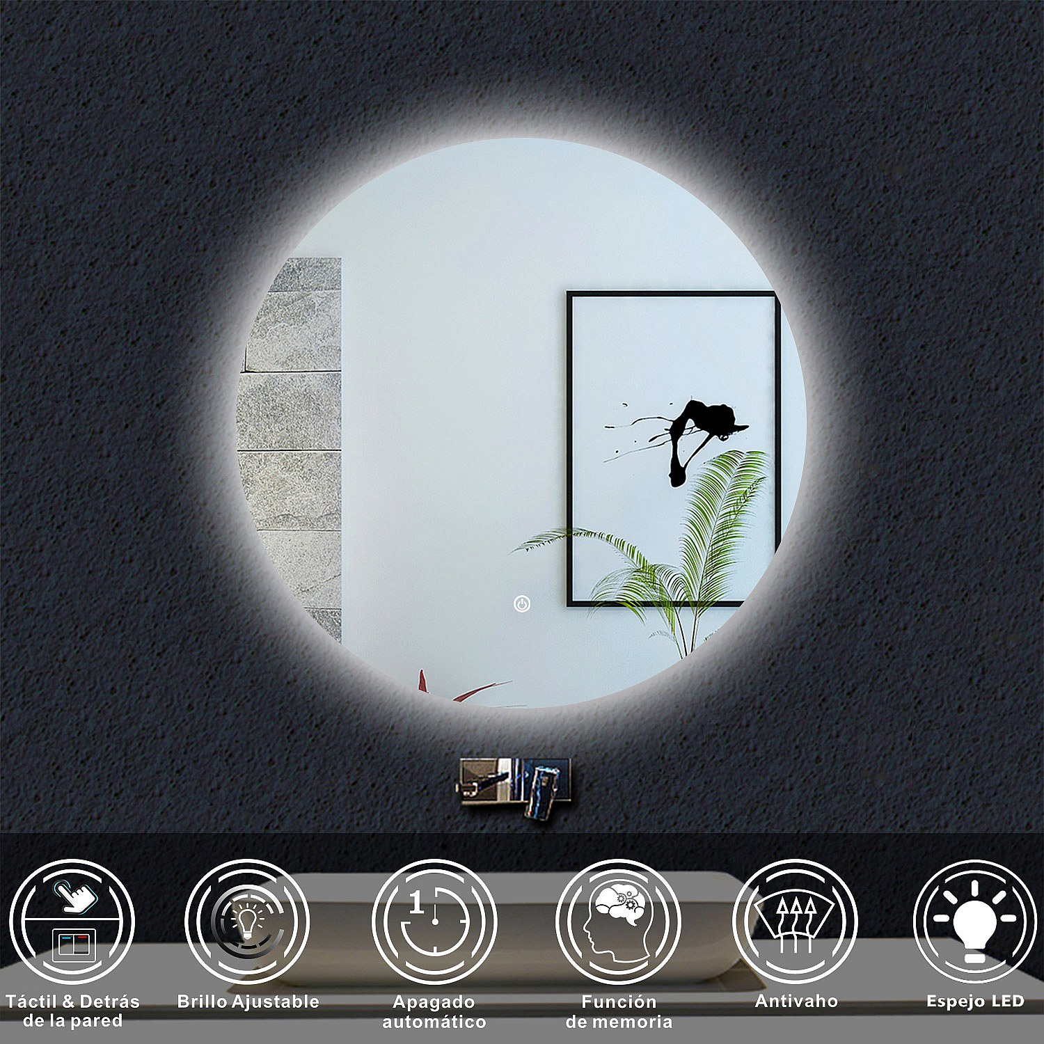 AICA Espejo de baño con iluminación LED Espejo redondo,60 x 60 cm, antivaho, brillo ajustable, memoria de apagado