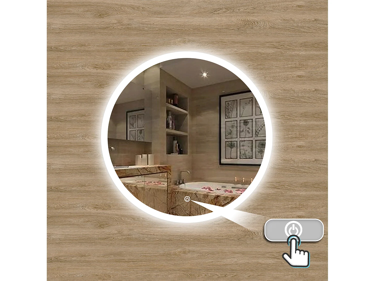 AICA Espejo de baño con iluminación LED Espejo redondo,70 cm, antivaho, brillo ajustable, memoria de apagado