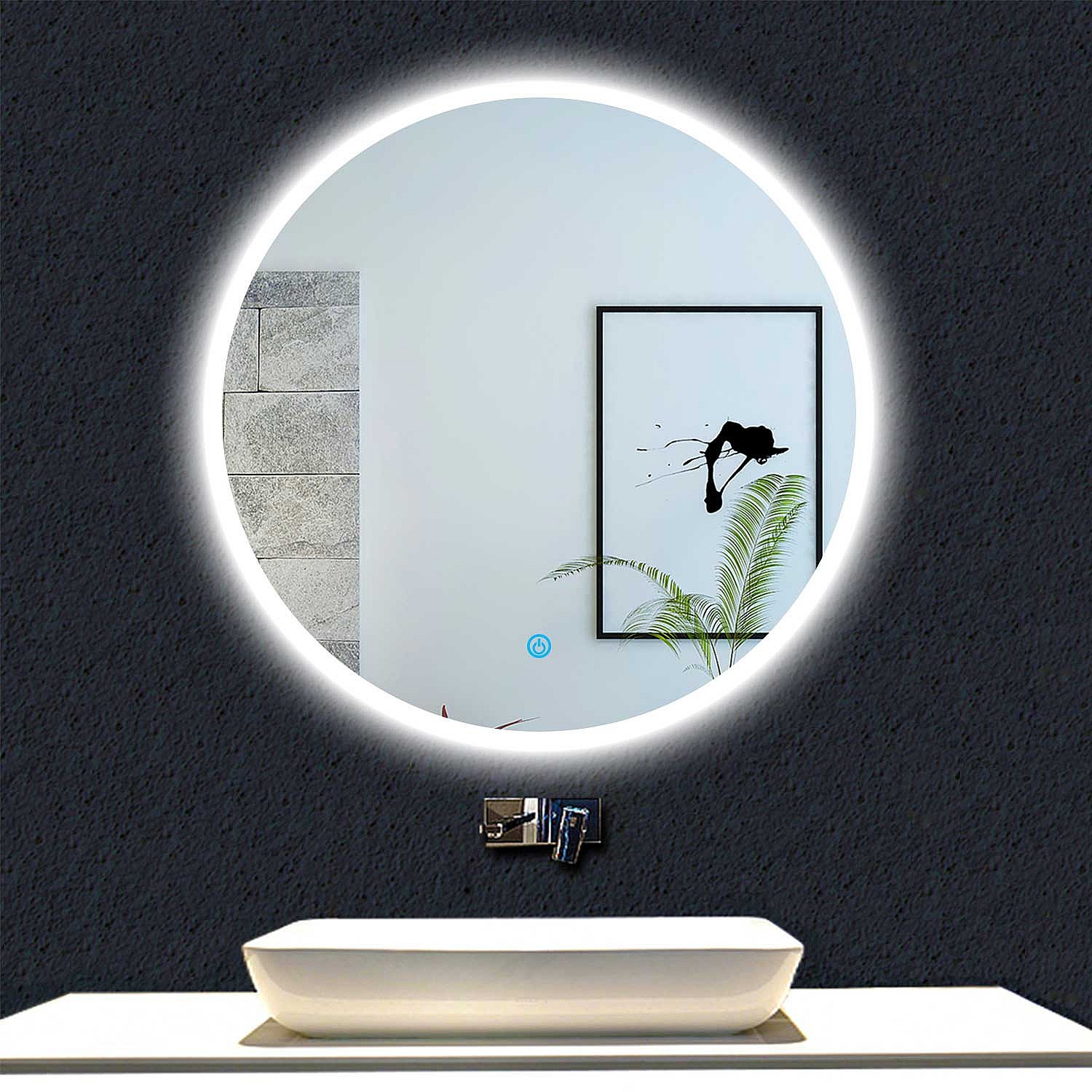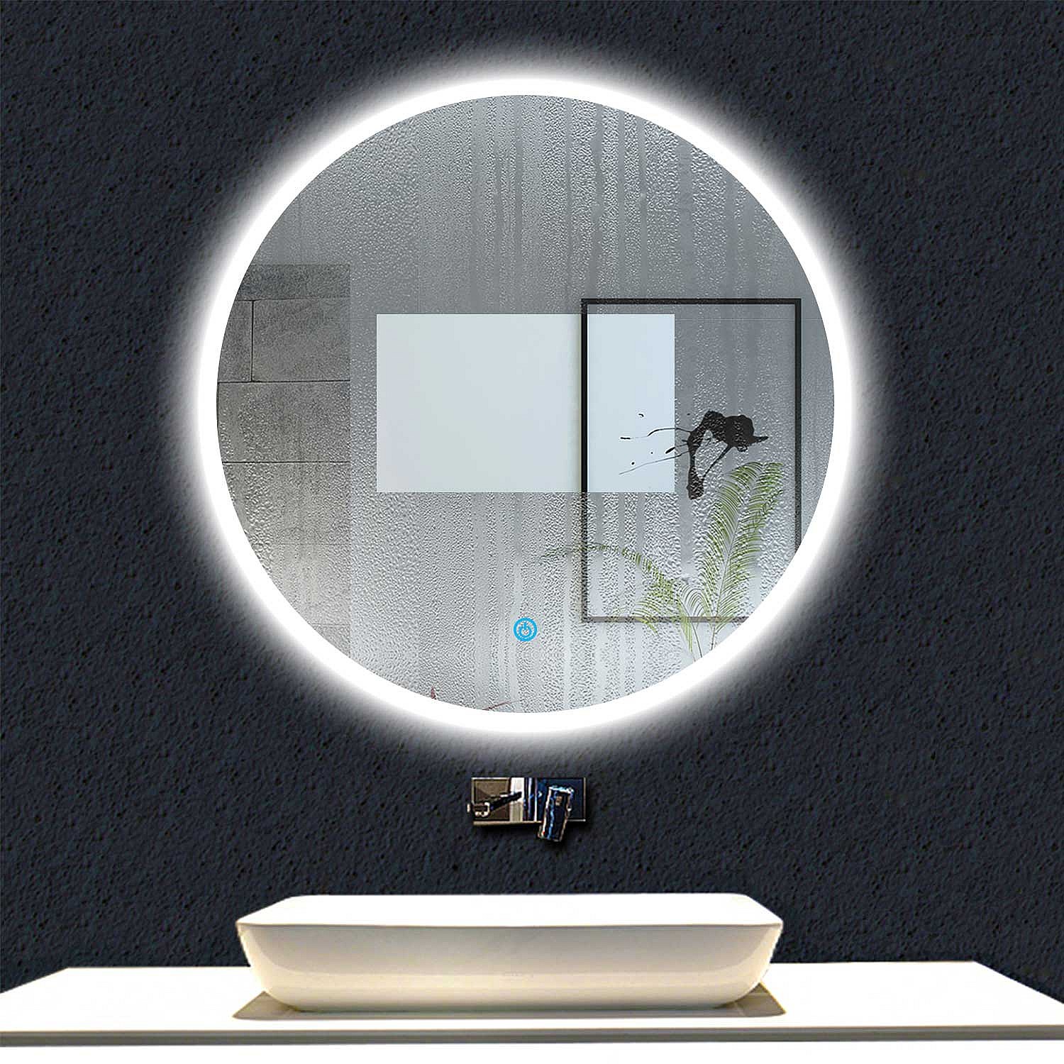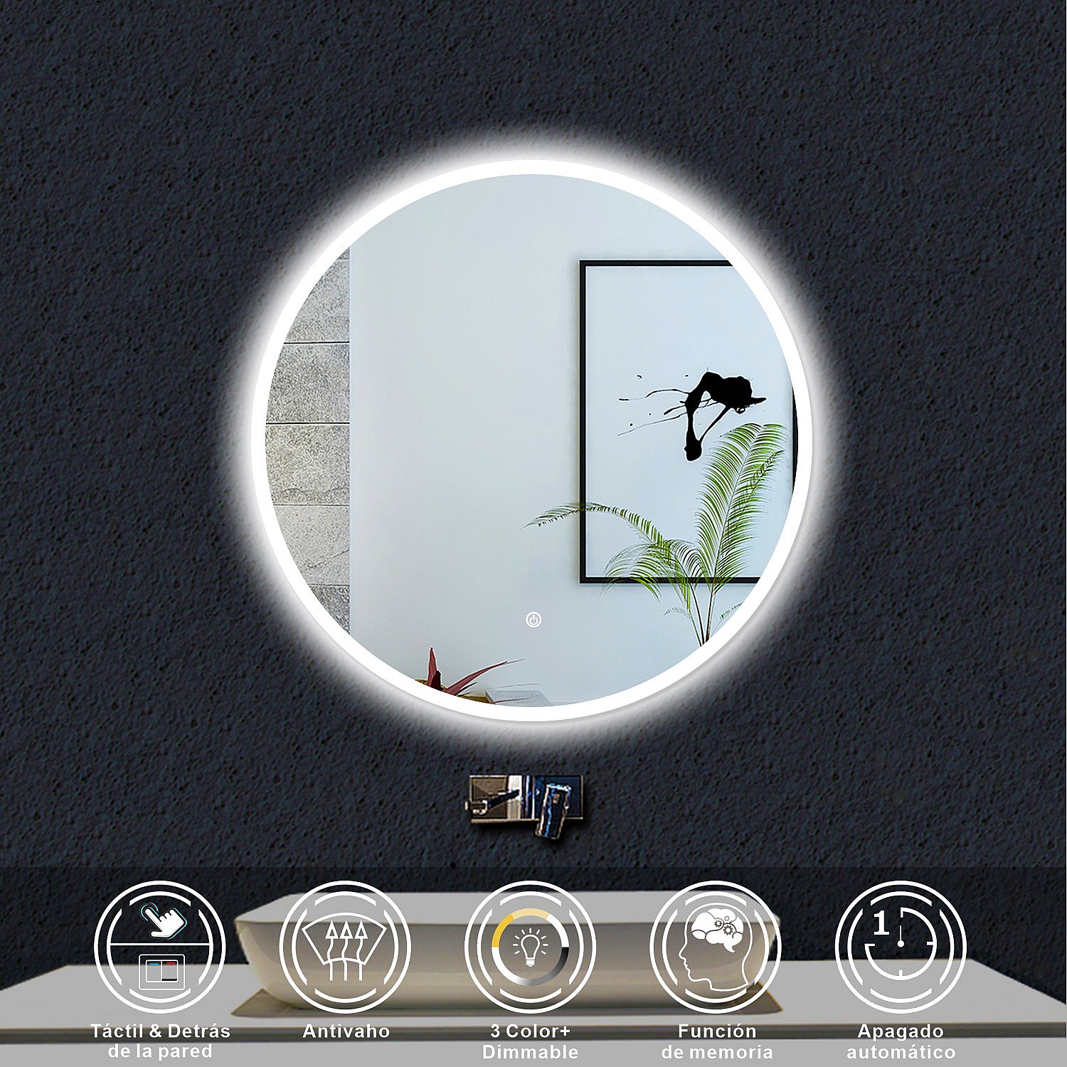 AICA Espejo de baño con iluminación LED Espejo redondo,80 cm,luz 3 colores, antivaho, brillo ajustable, memoria de apagado