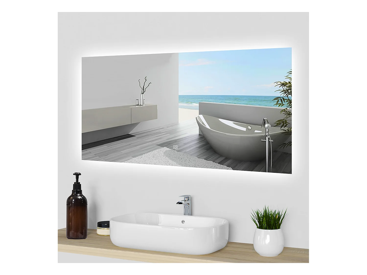 Aica Espejo de baño LED 100 x 60 cm, antivaho, brillo regulable, función memoria