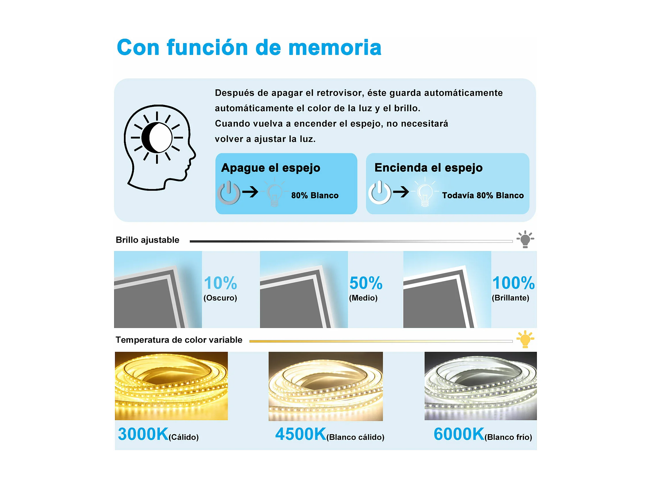 Aica Espejo de baño LED 140×80cm,Bluetooth,Antivaho