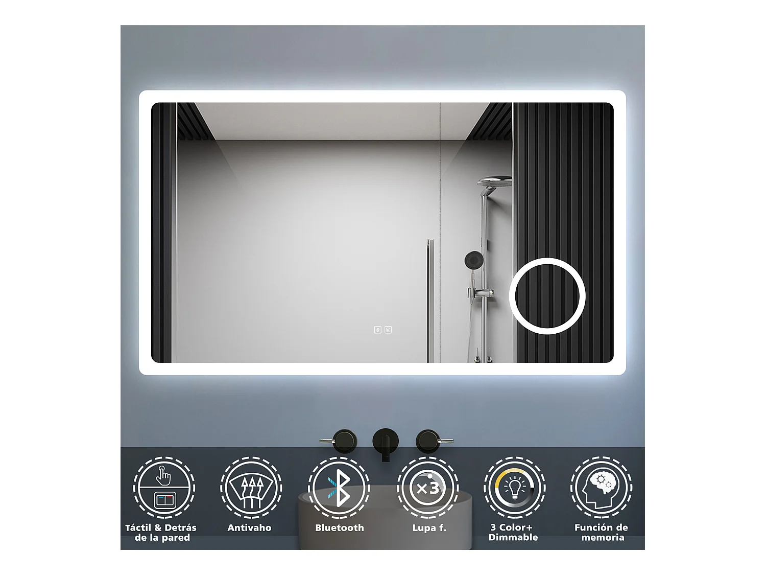 Aica Espejo de baño LED 140×80cm,Bluetooth,3×lupa