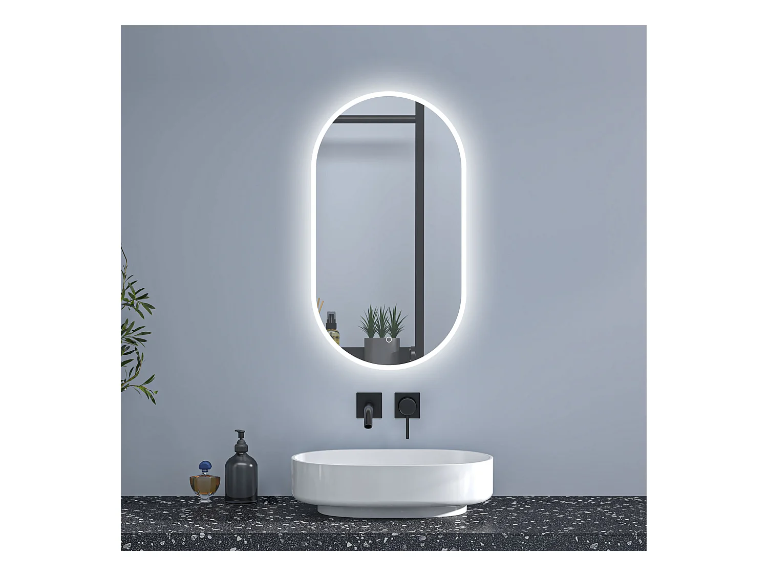 Aica Espejo de baño LED 500 x 1000 mm, ovalado, antivaho, luminosidad regulable