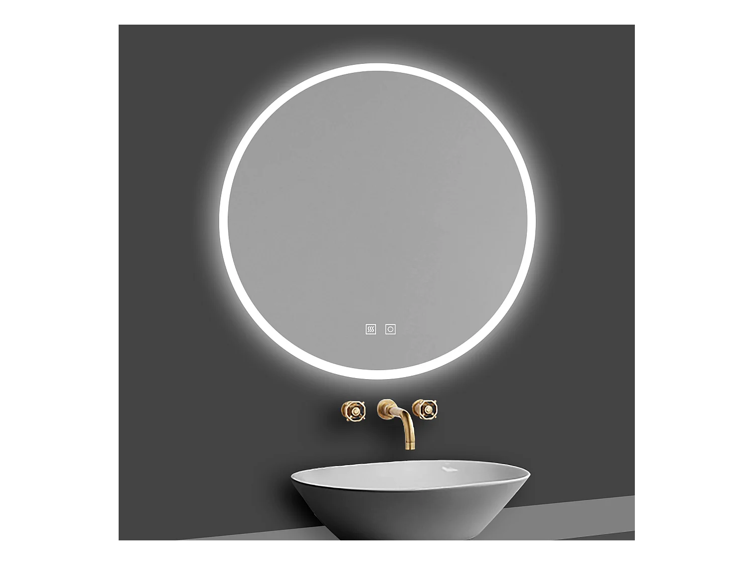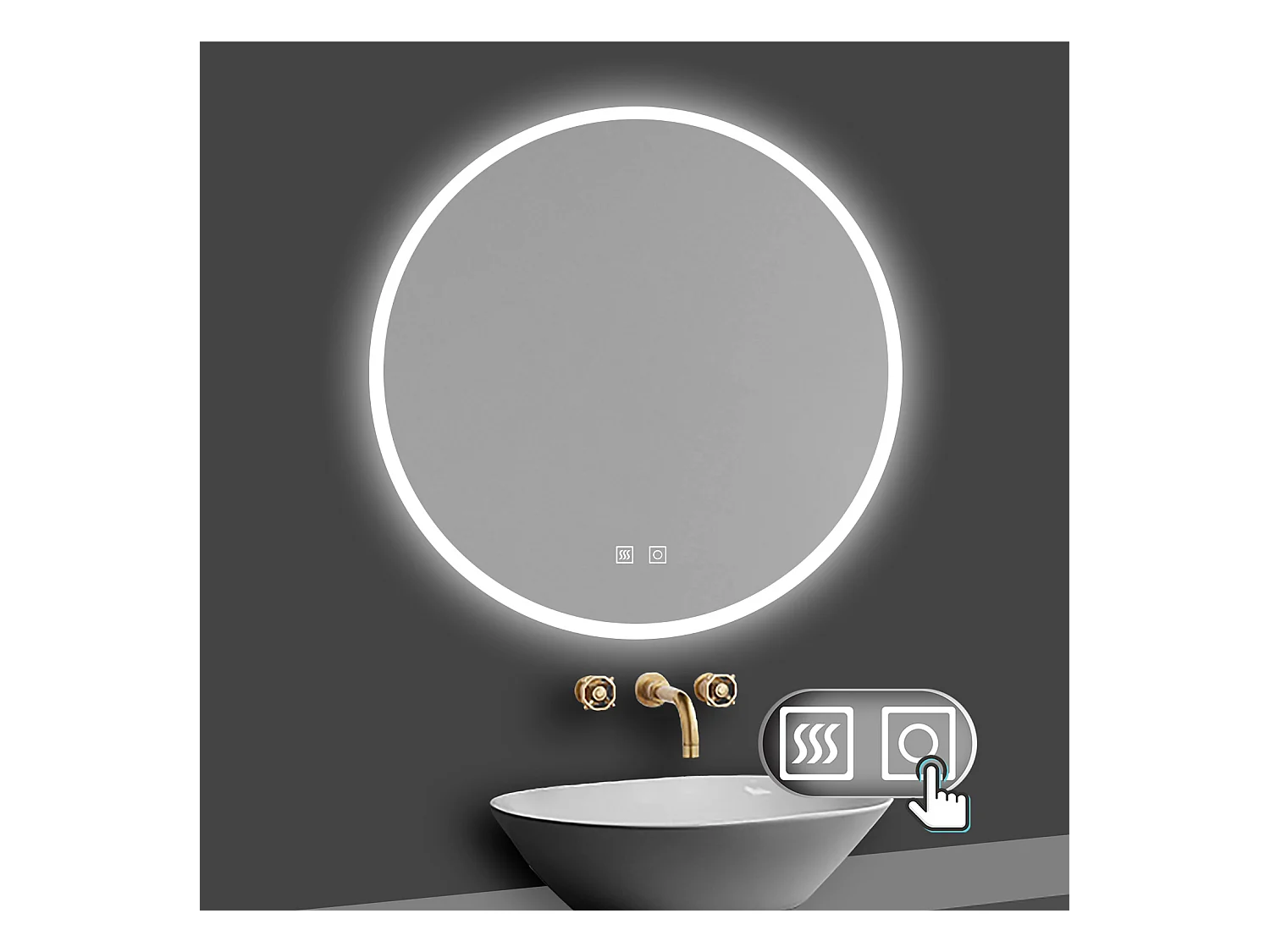Aica Espejo redondo de baño LED 80cm,antivaho,brillo ajustable