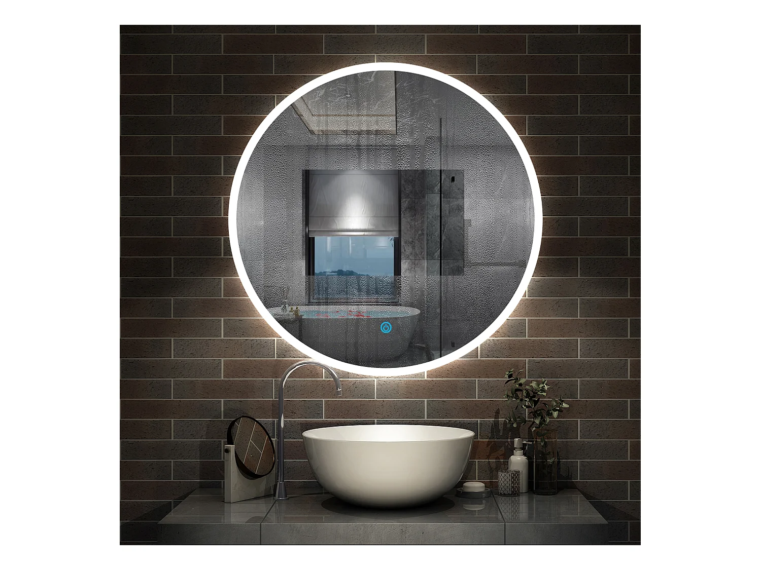 Aica Espejo redondo de baño LED 80cm,antivaho,interruptor táctil