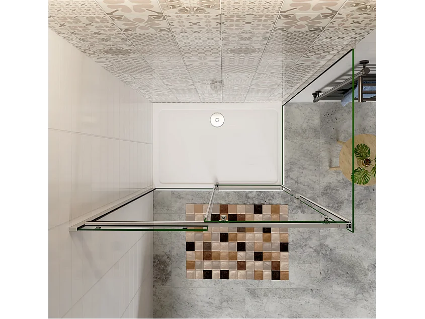 AICA Mampara Corredera Frontal+Panel Lateral,Perfil Cromado,Vidrio Templado 6mm (1275-1295)x(783-803)x1950mm
