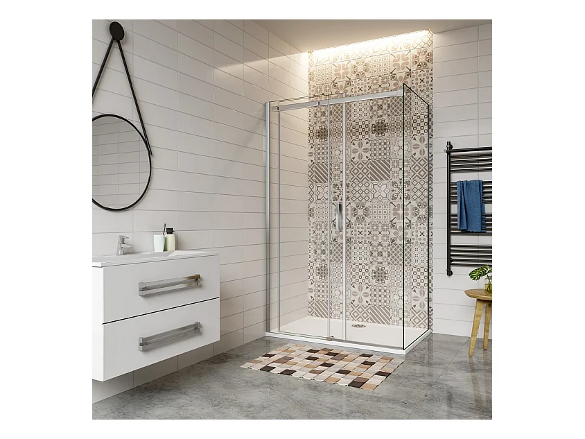 AICA Mampara Corredera Frontal+Panel Lateral,Perfil Cromado,Vidrio Templado 6mm (1525-1545)x(783-803)x1950mm