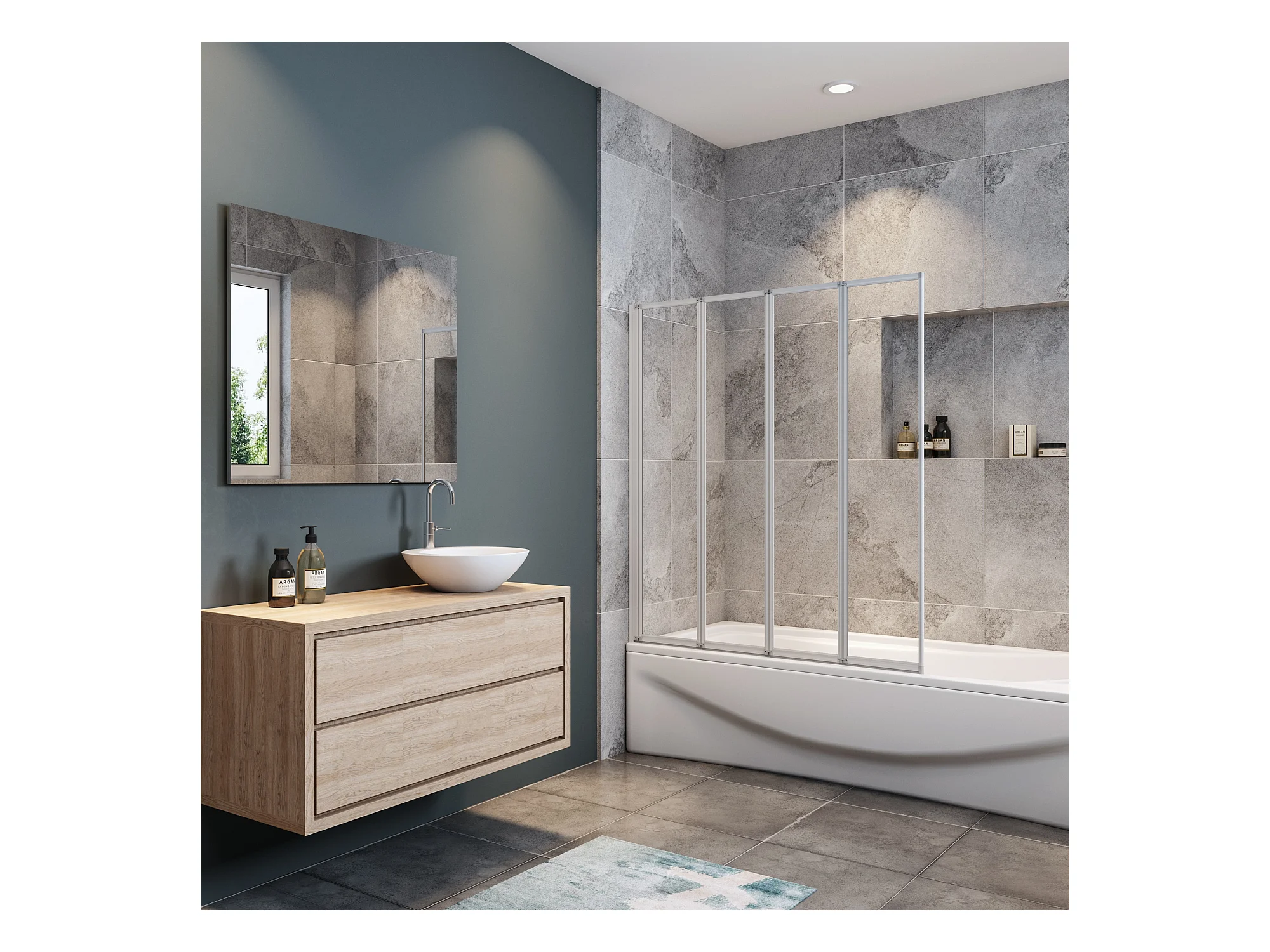 Mampara de bañera 4 hojas plegables vidrio templado 4mm perfil gris mate (890-900)x1400mm