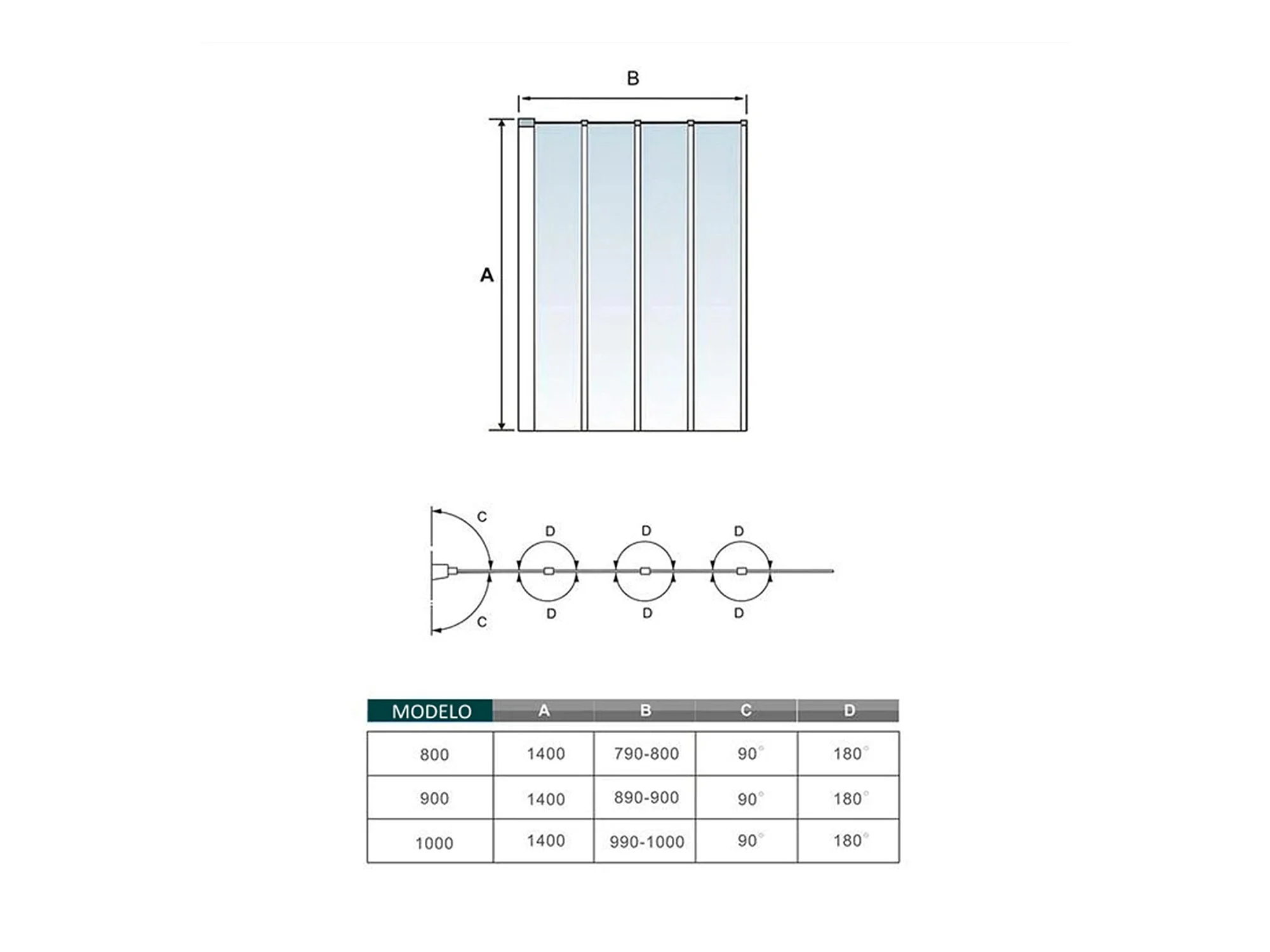 Mampara de bañera abatible 2 hojas cristal antical 6mm plegable (880-900)x1400mm