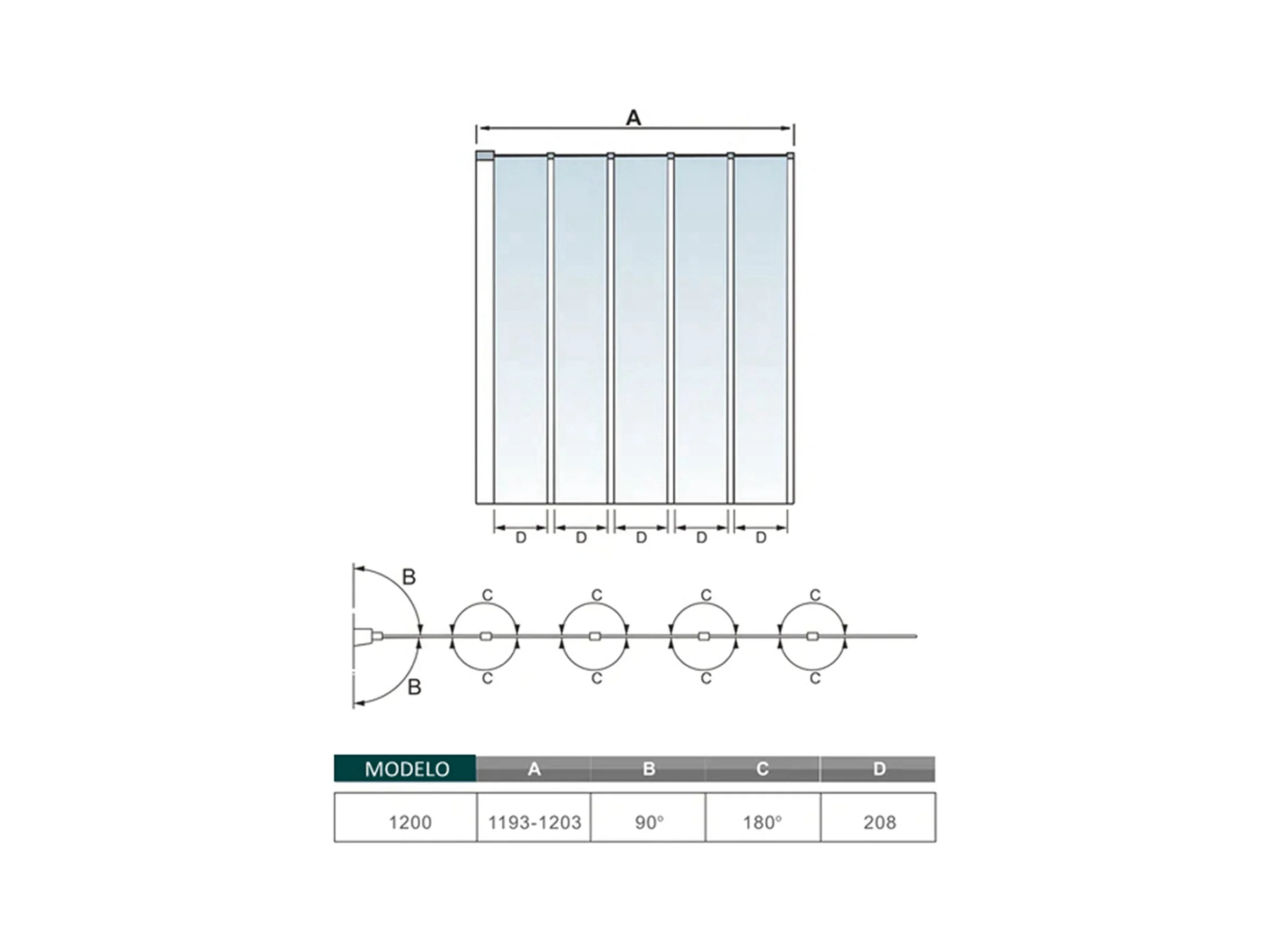 Mampara de bañera abatible 3 hojas cristal antical 6mm 3 veces plegable (1180-1200)x1400mm