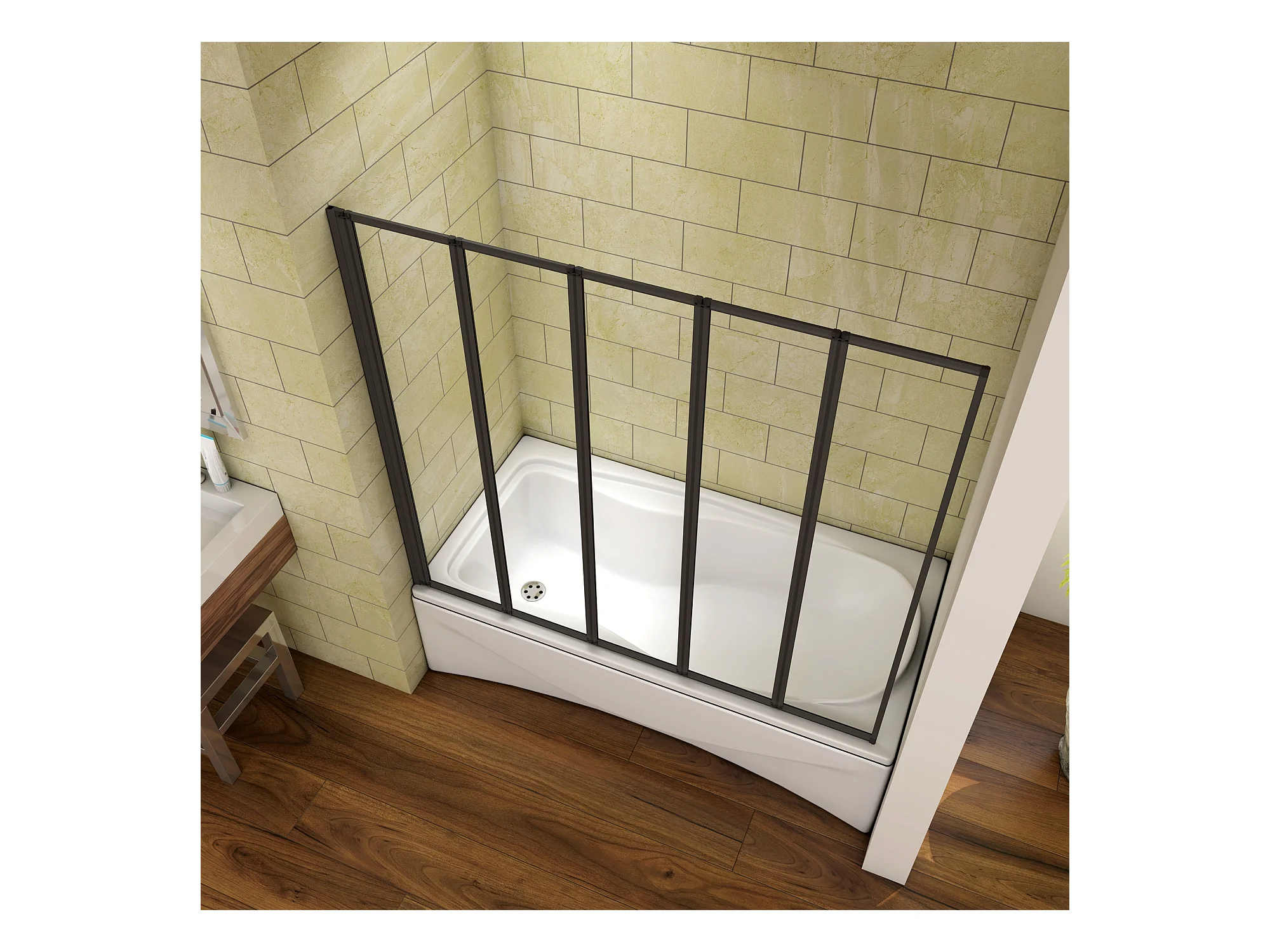 Mampara de bañera 4 hojas plegables vidrio templado 4mm perfil gris mate (890-900)x1400mm