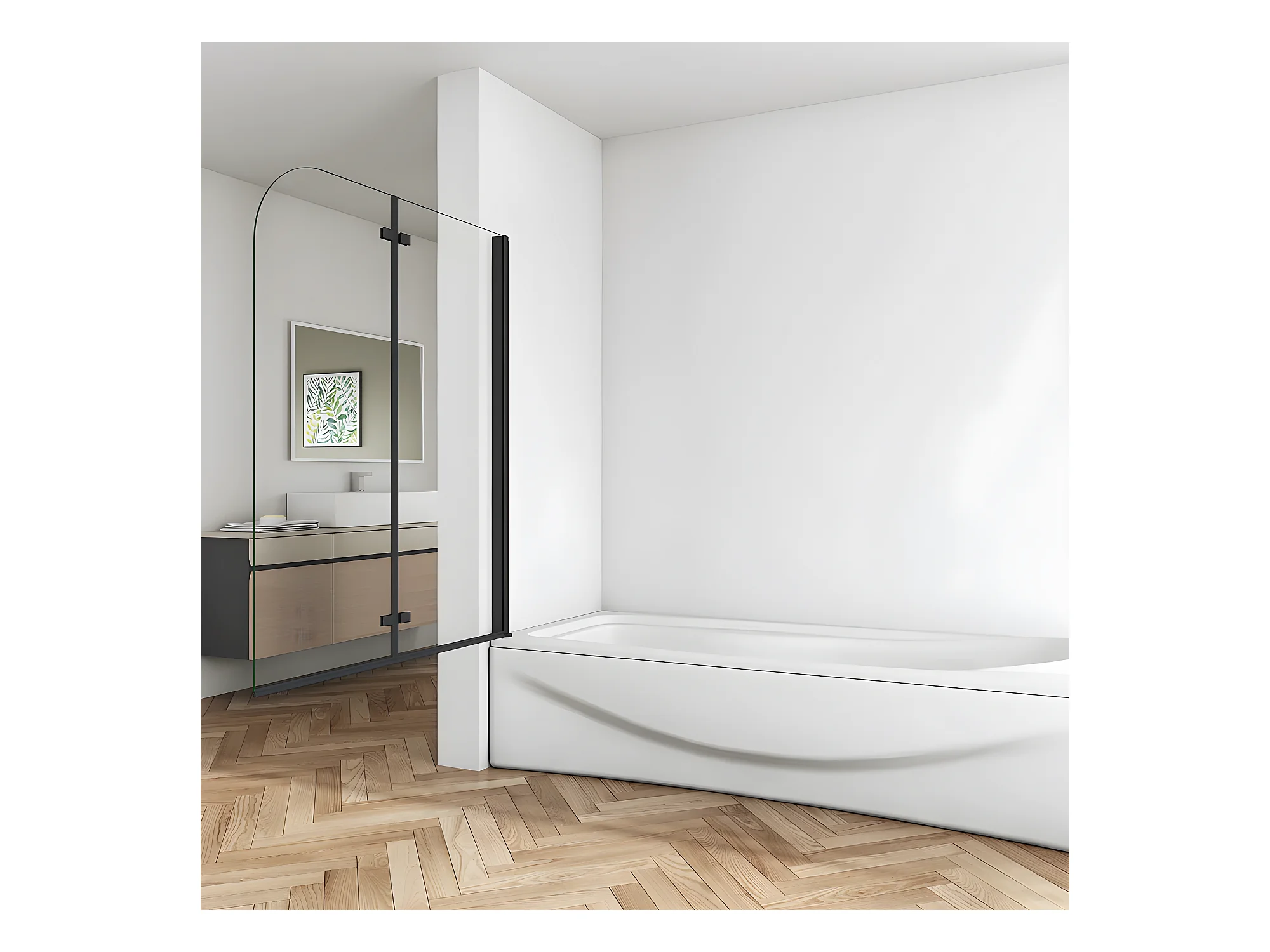 Mampara de bañera abatible 2 hojas cristal antical 6mm plegable perfil negro mate (980-1000)x1400mm
