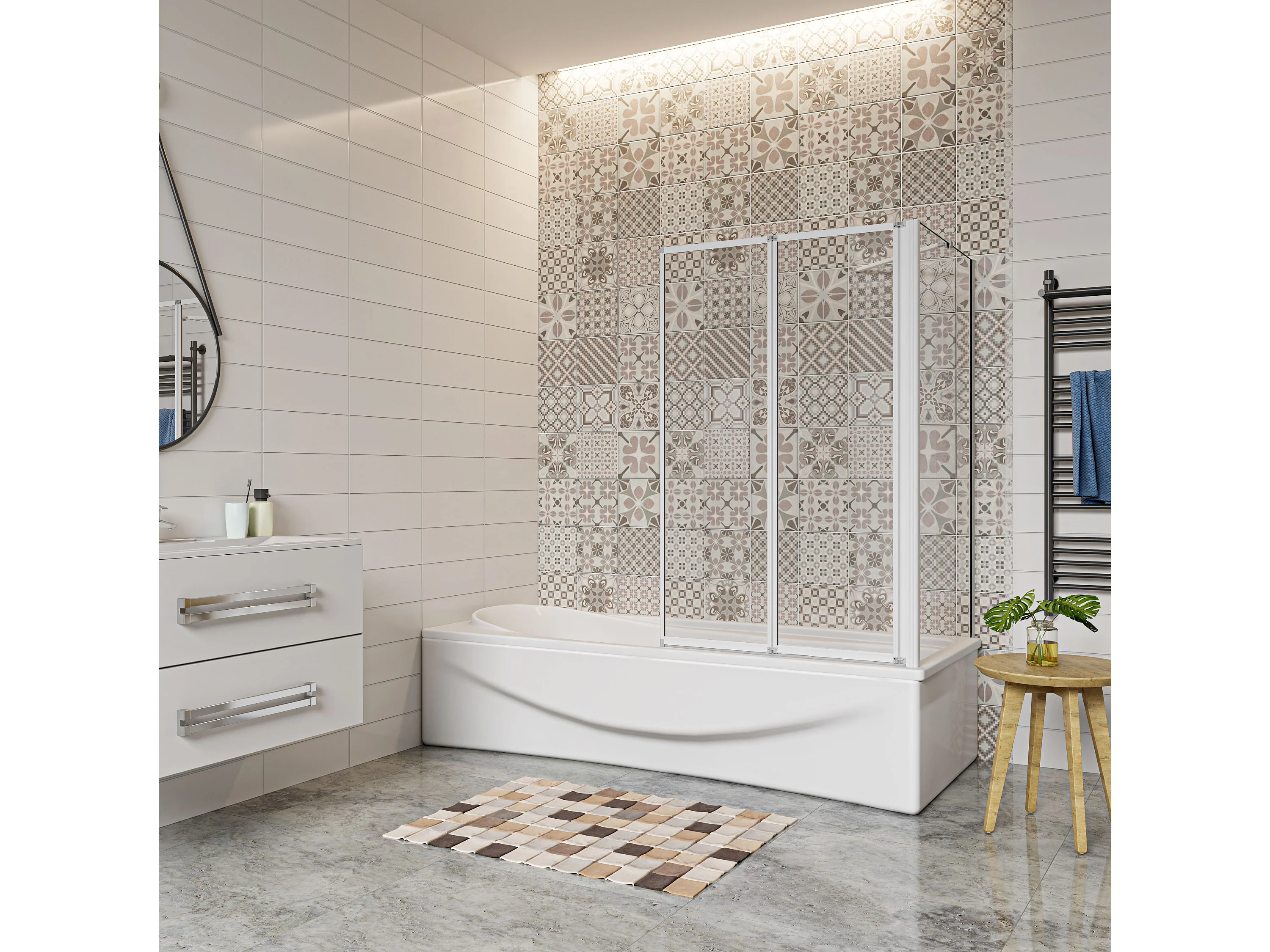 Mampara de bañera plegable-vidrio 4mm con perfil gris mate-2 hojas+panel lateral 700mm-(899-909)x(672-699)x1400mm