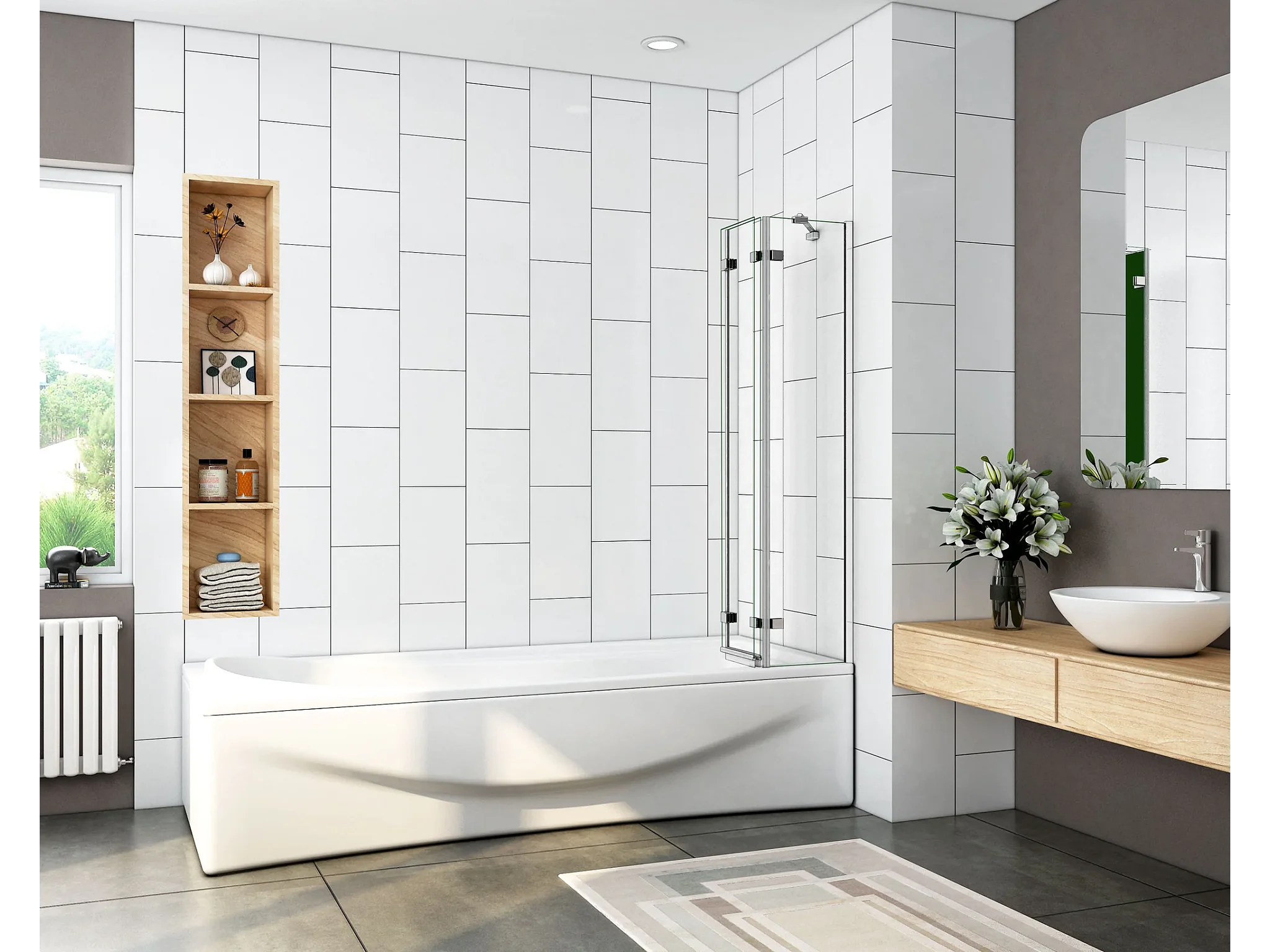 Mampara de Bañera Abatible 3 Hojas Cristal Antical 6mm 3 veces plegable Tamaño (1280-1300)x1400mm-AICA