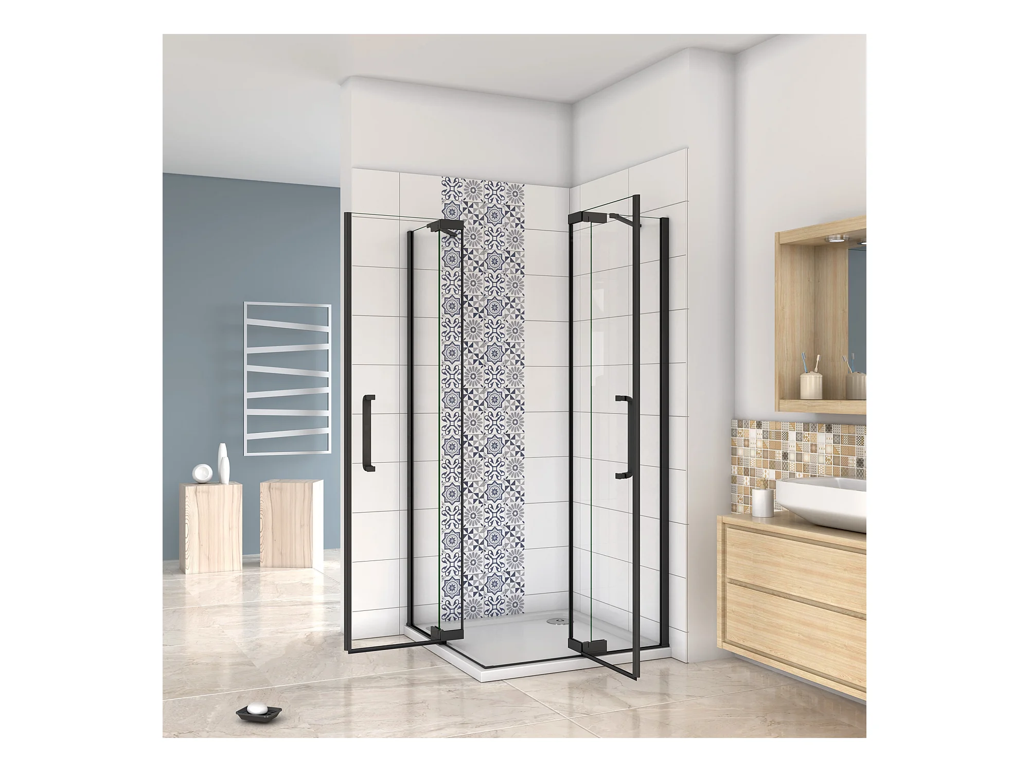Juego de 2 paneles de ducha - Ancho 90 x Ancho 120 x Alt. 210 cm