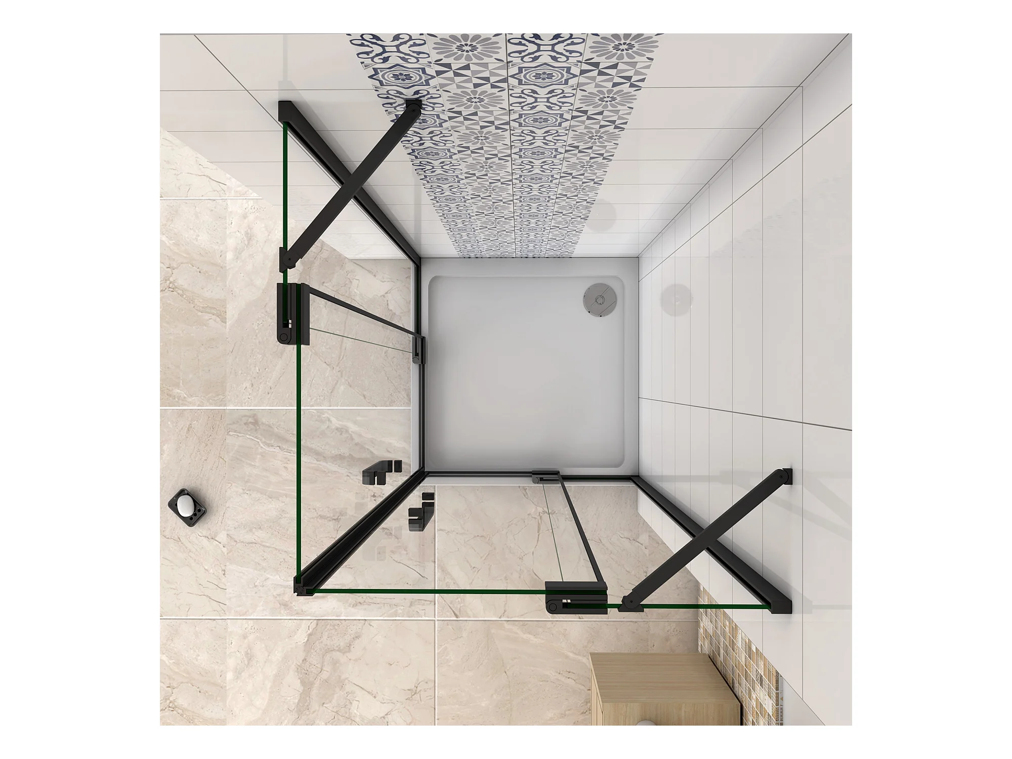 AICA Mampara de Ducha Cuadrada Abatible Perfil Cromado Antical 6mm (880-900)x(880-900)x1950mm+Plato de Ducha 90x90x3cm textura pizarra+Desagüe